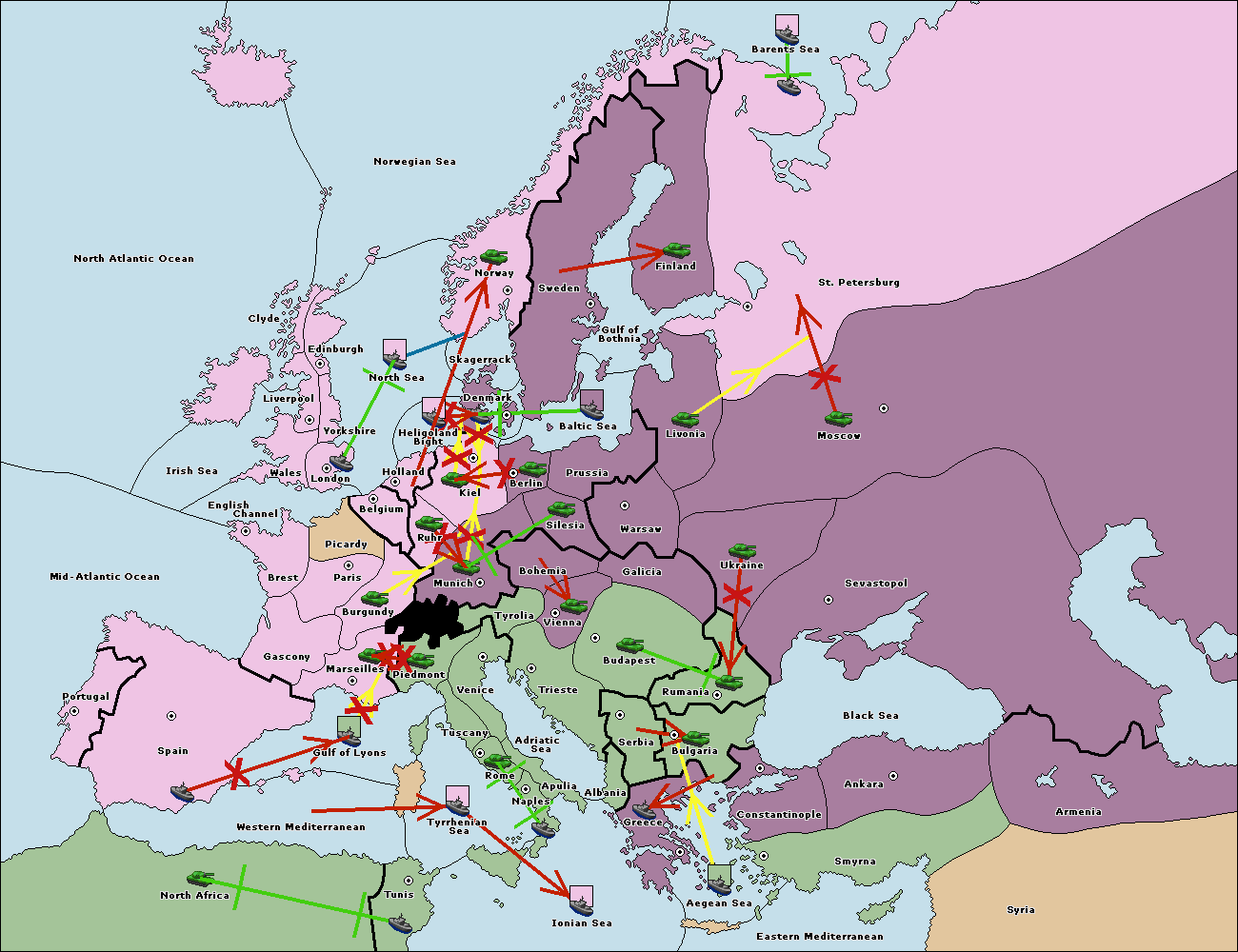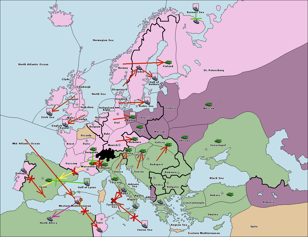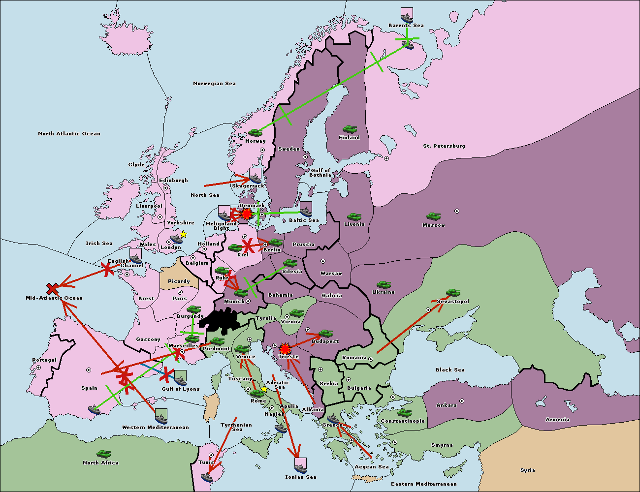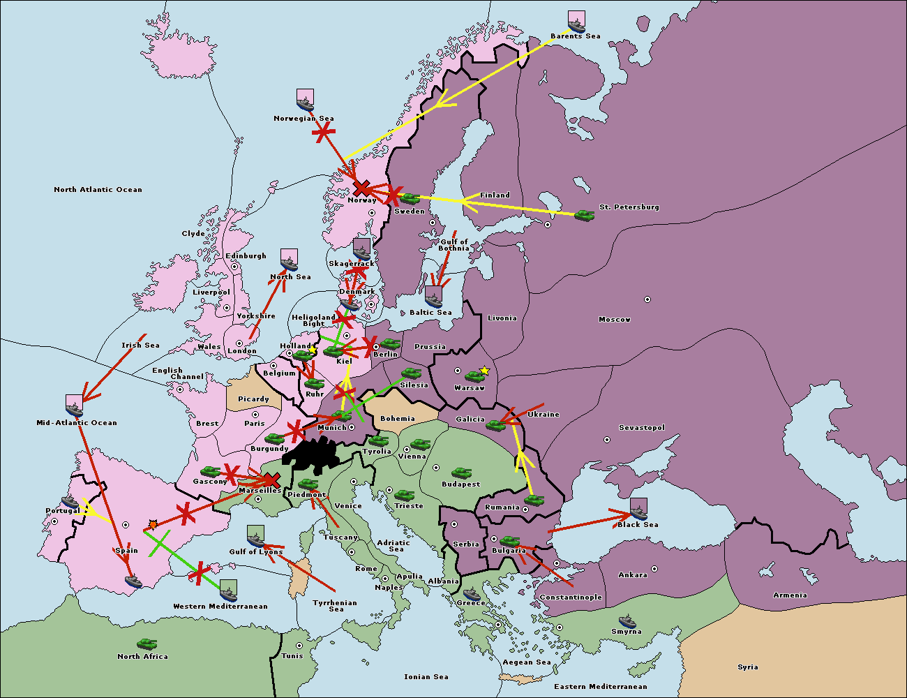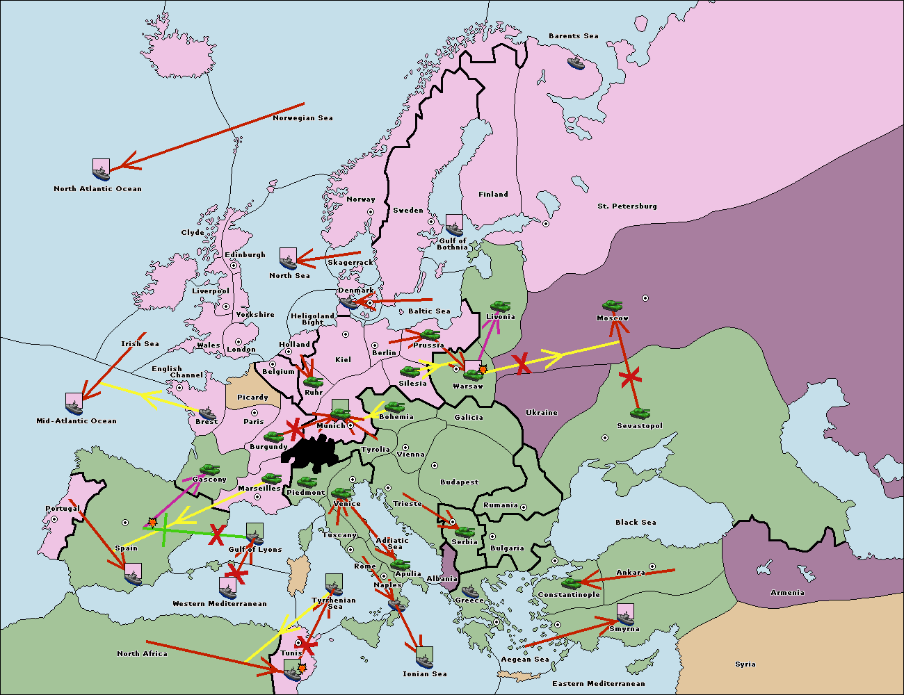 The fleet at Bulgaria (North Coast) move to Constantinople.