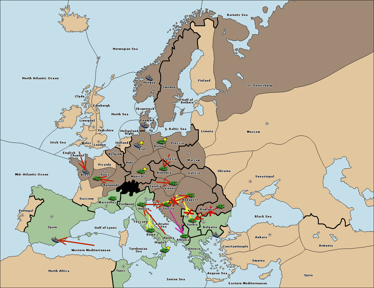 The fleet at Bulgaria (South Coast) move to Constantinople.