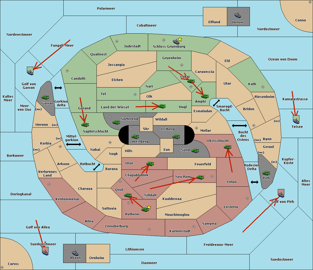 The fleet at Schloss Gruenburg move to Ozean von Doom.