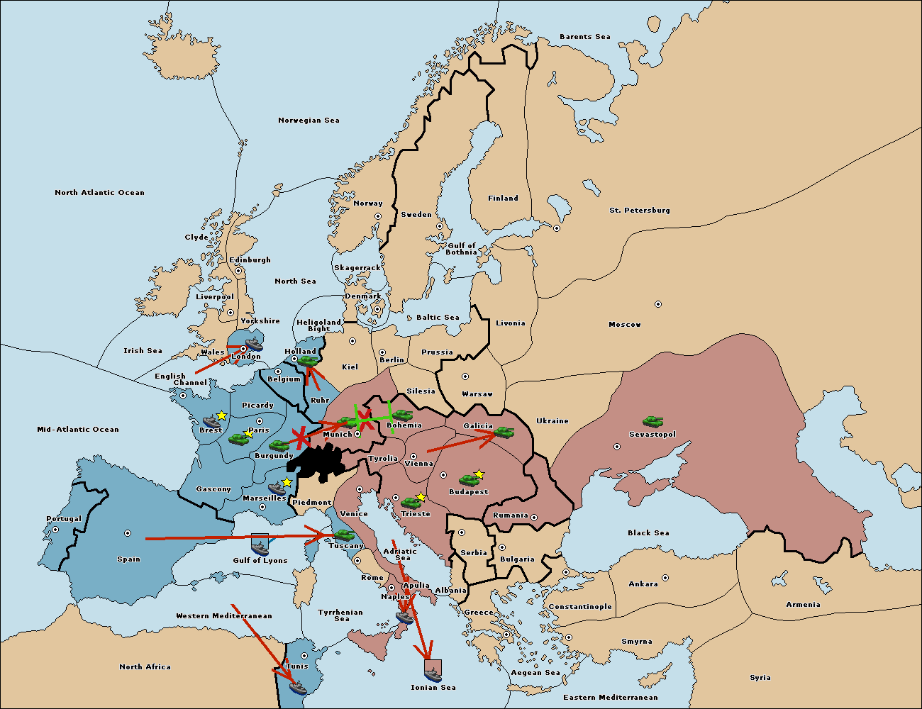 The fleet at Spain (South Coast) move to Western Mediterranean.