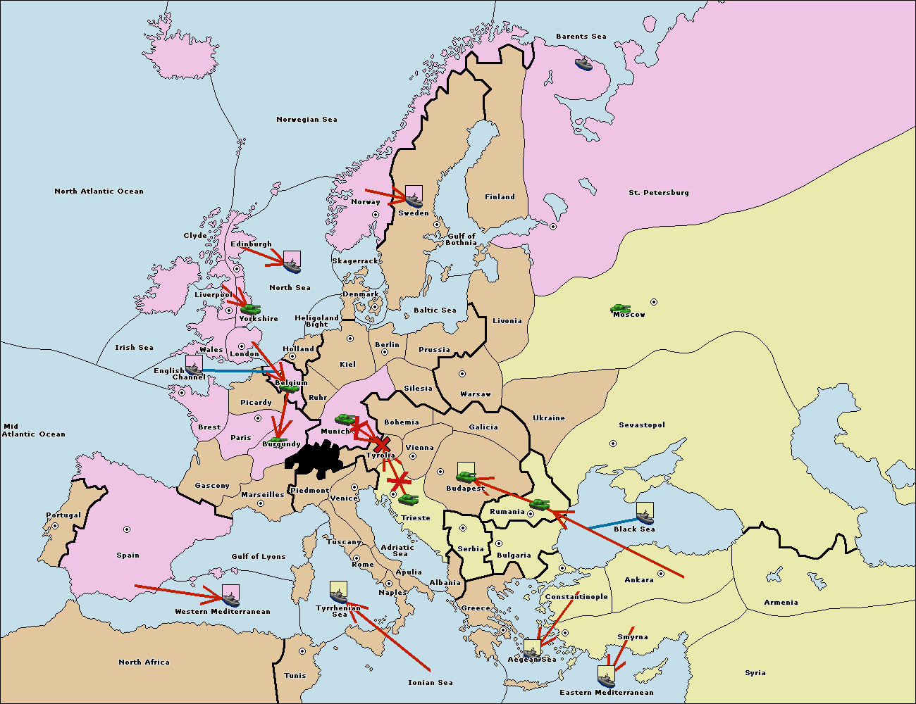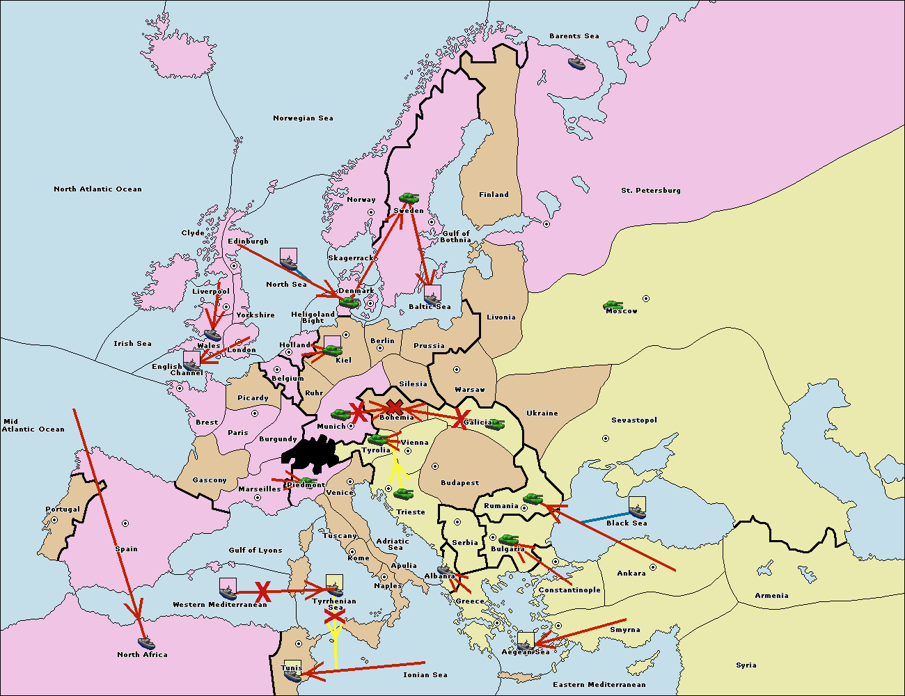The army at Tyrolia support move to Bohemia from Galicia.