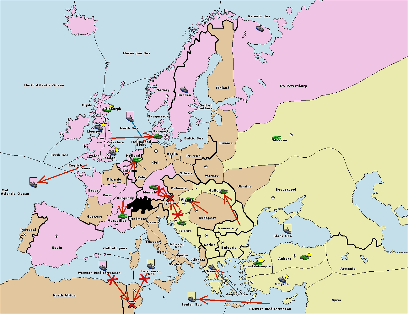 The fleet at Mid-Atlantic Ocean move to Western Mediterranean.