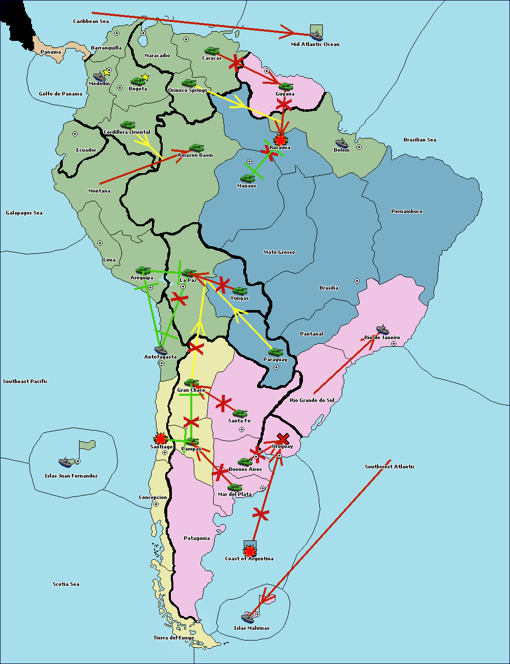 The army at Orinoco Springs support move to Amazon Basin from Manaus.