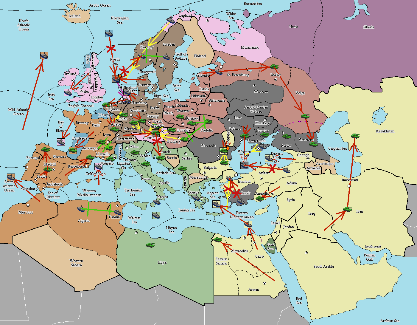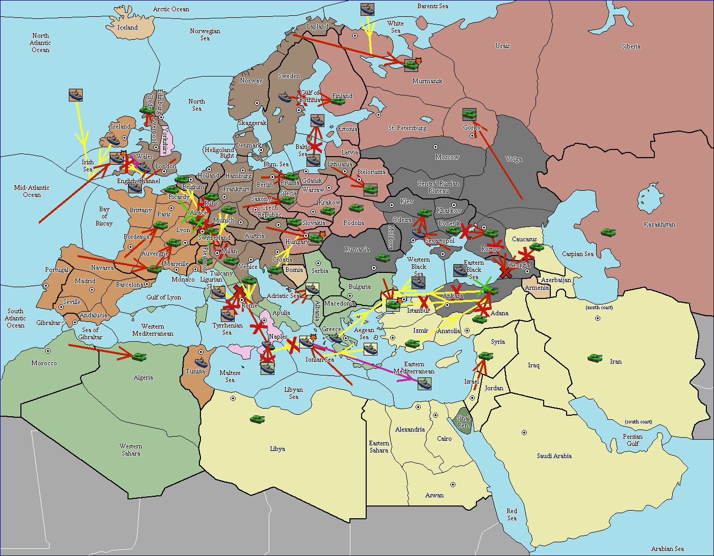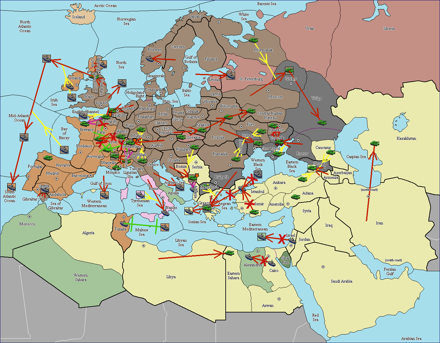 The fleet at Eastern Mediterranean support move to Libyan Sea from Ionian Sea.