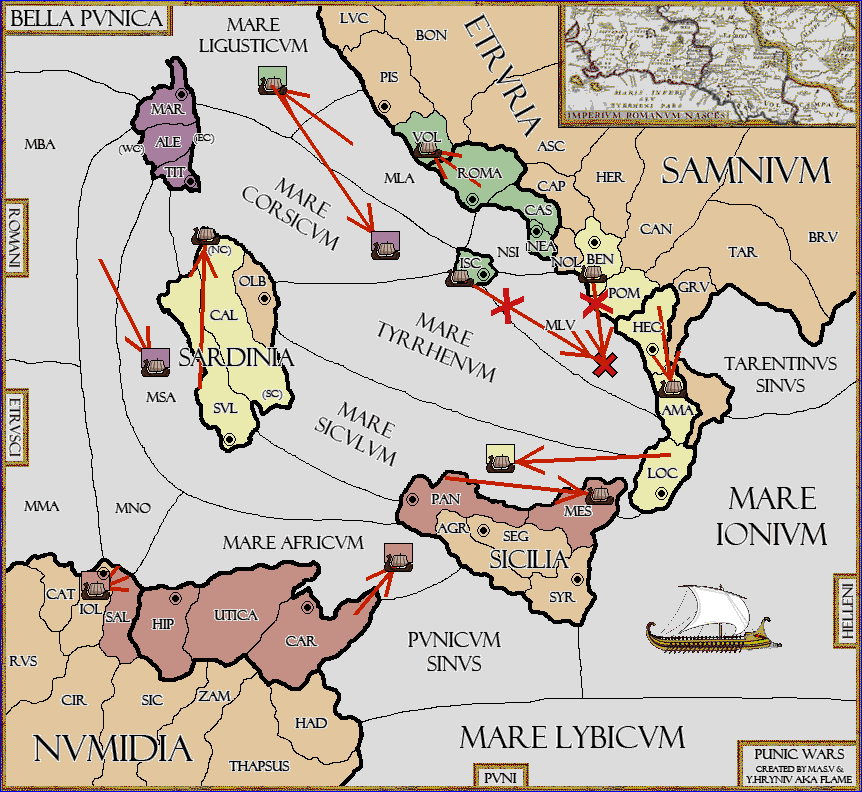 The fleet at Mare Tyrrhenum move to Mare Corsicum.
