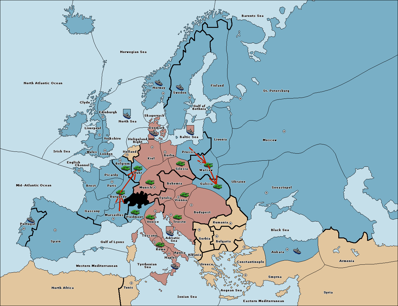The fleet at Sevastopol move to Black Sea.