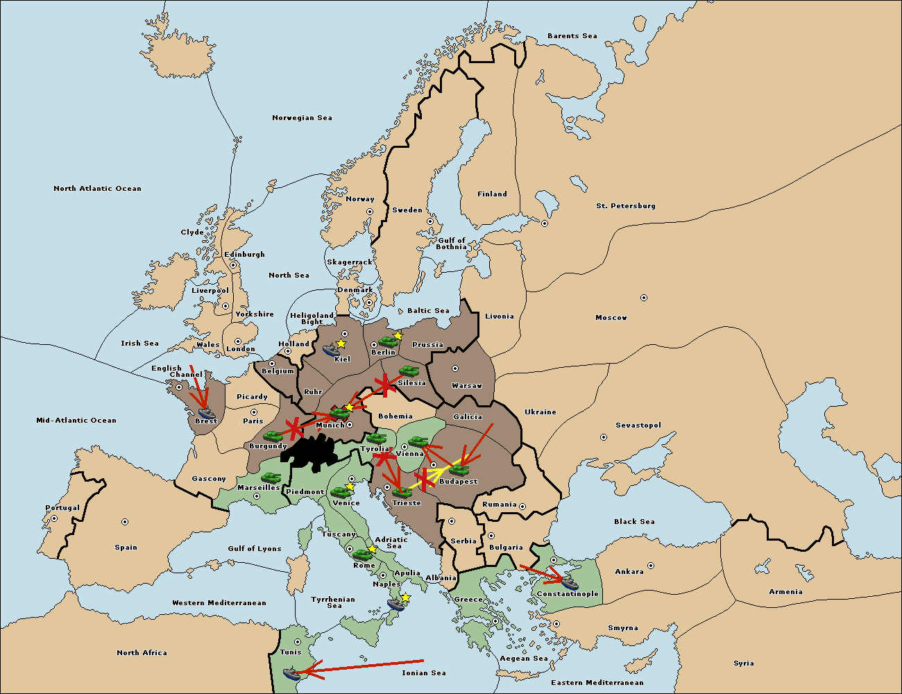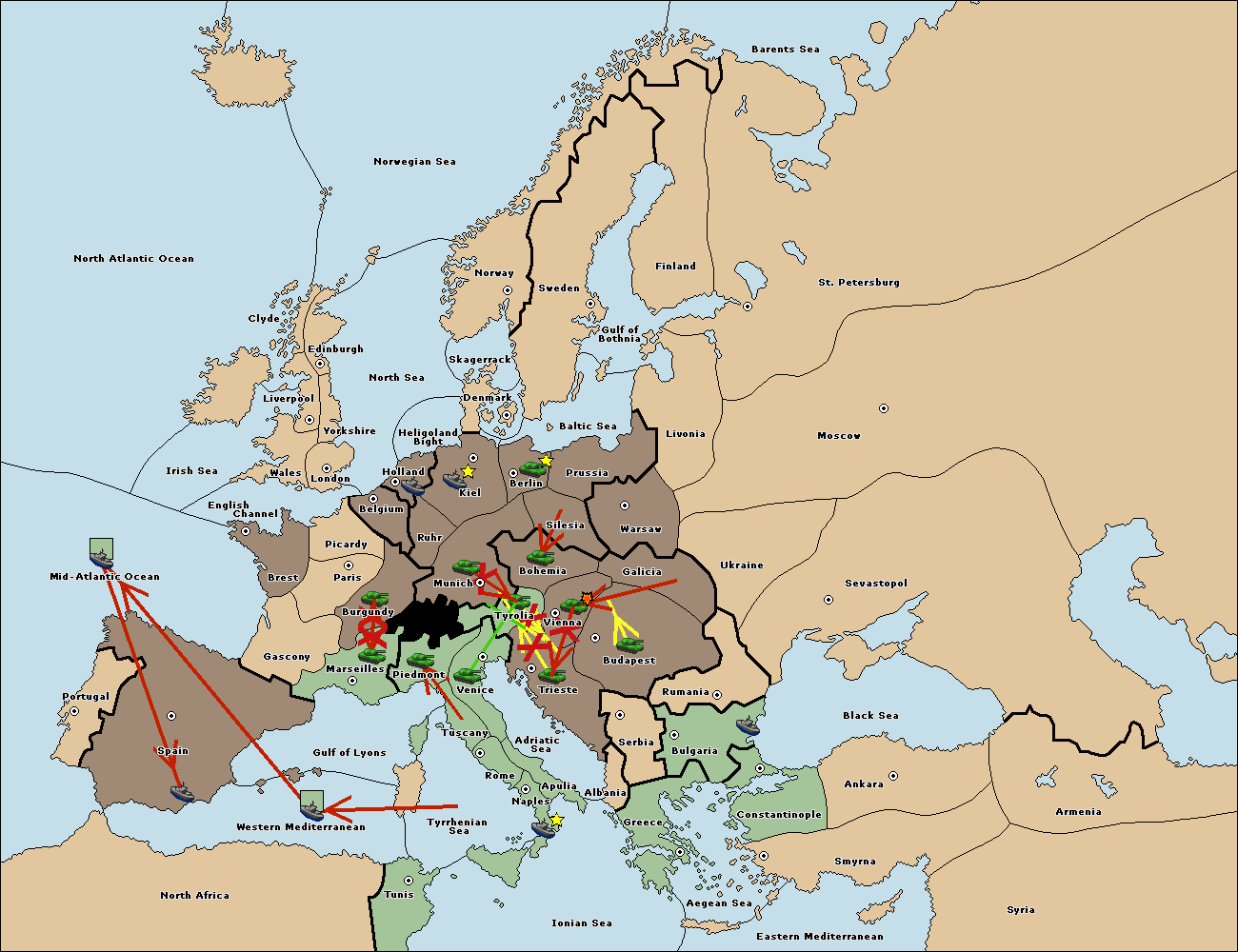 The fleet at Spain (South Coast) support move to Marseilles from Piedmont.