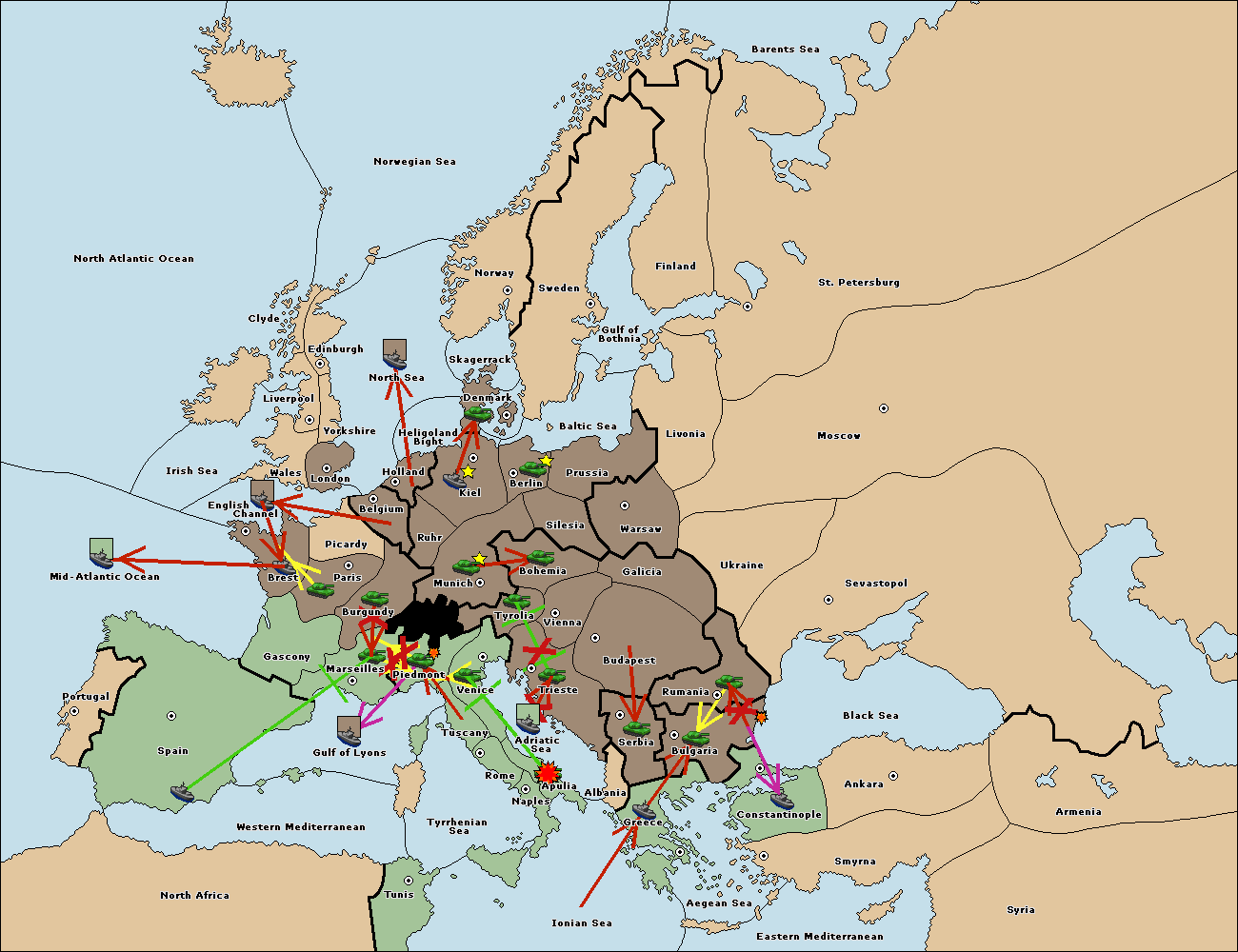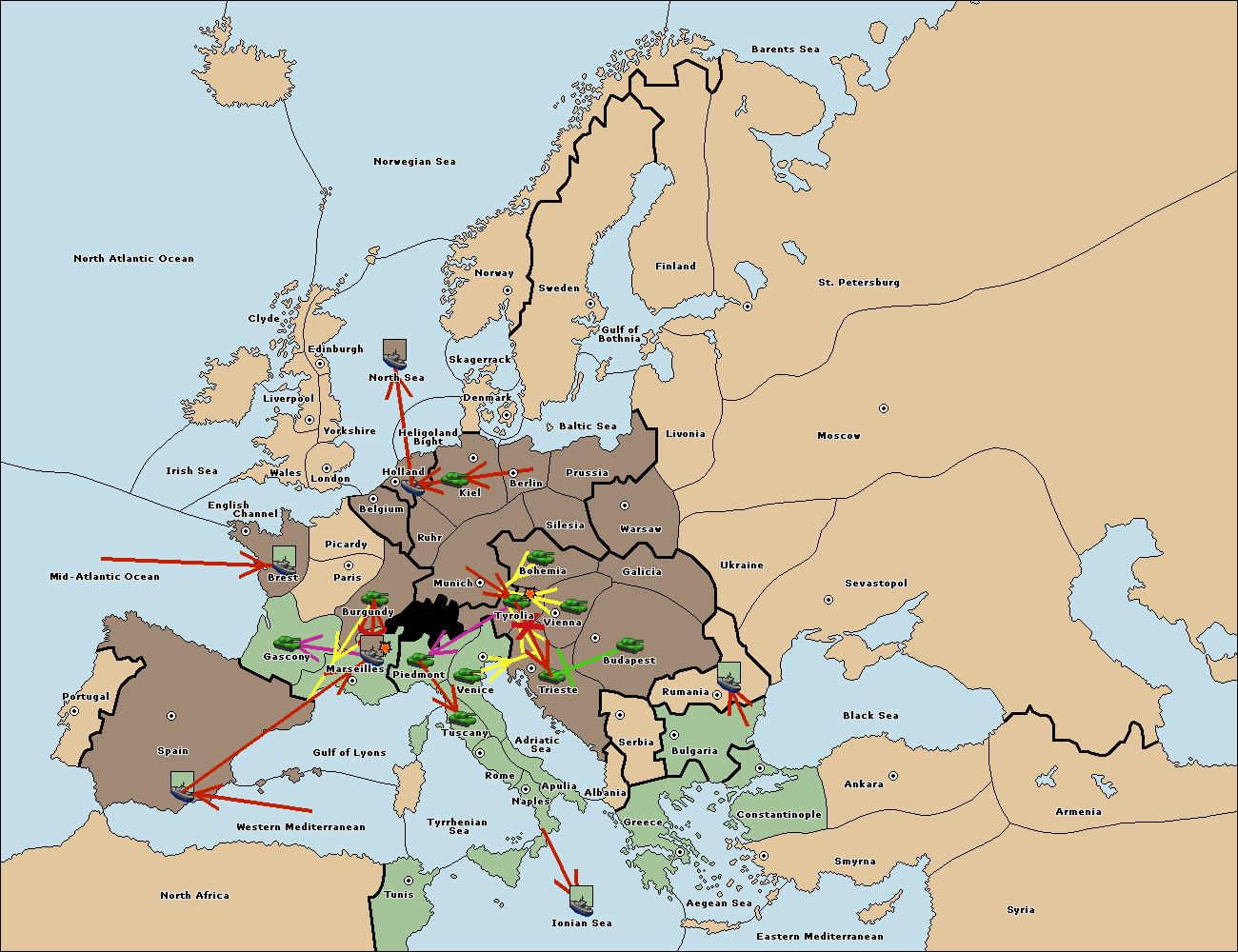 The fleet at Spain (South Coast) support move to Marseilles from Burgundy.