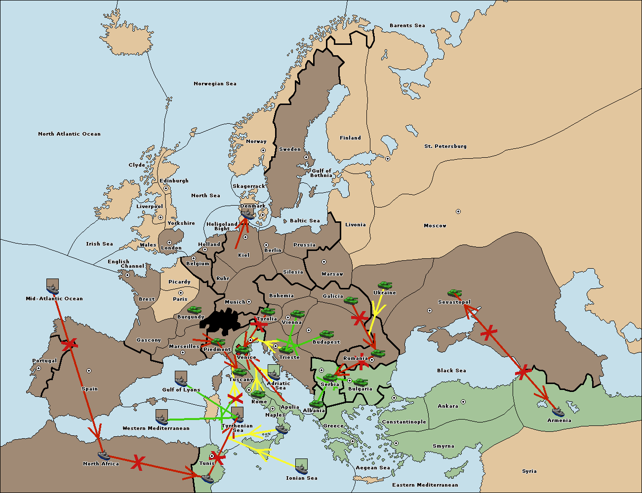 The fleet at Ionian Sea support move to Tunis from Tuscany.
