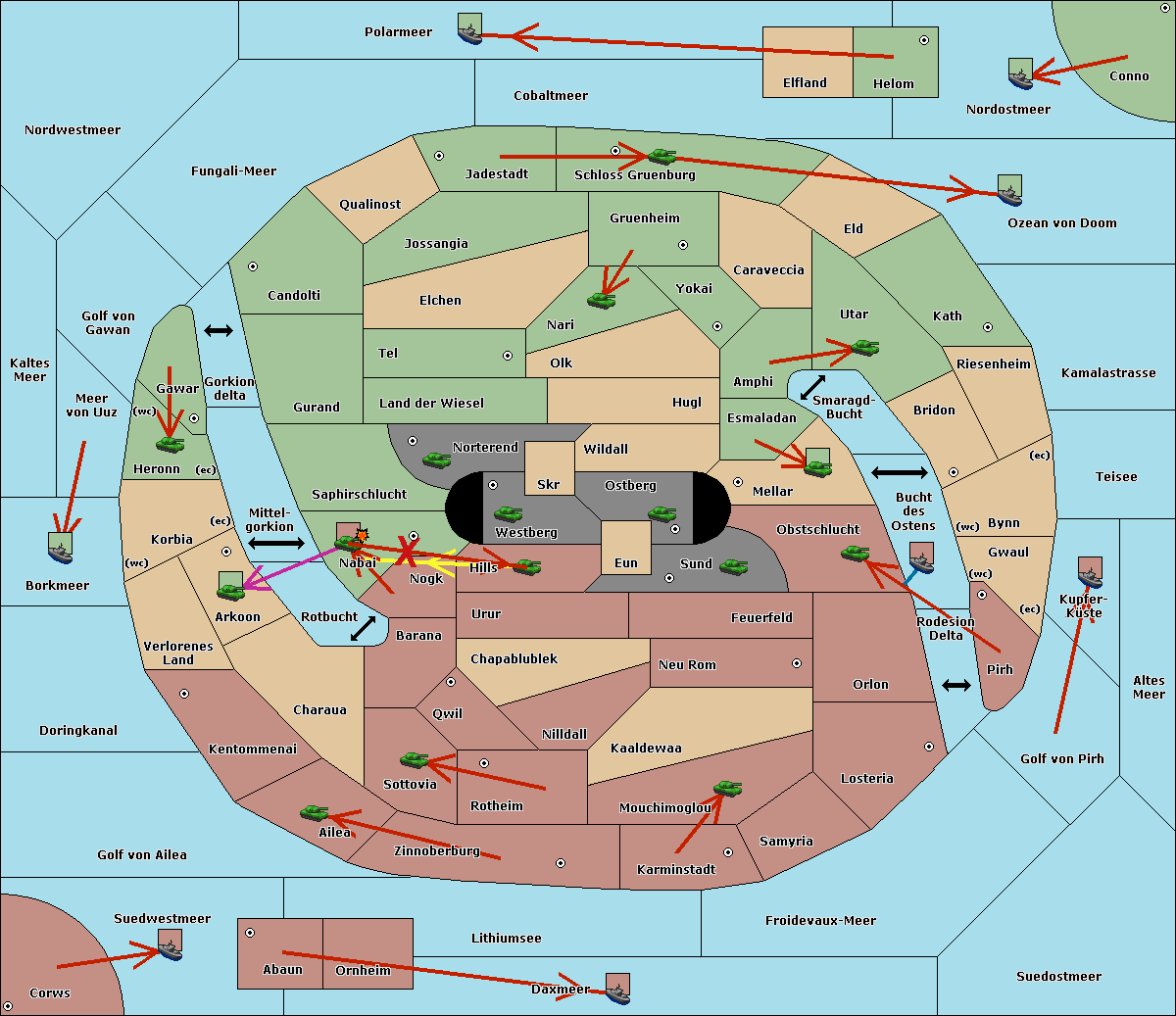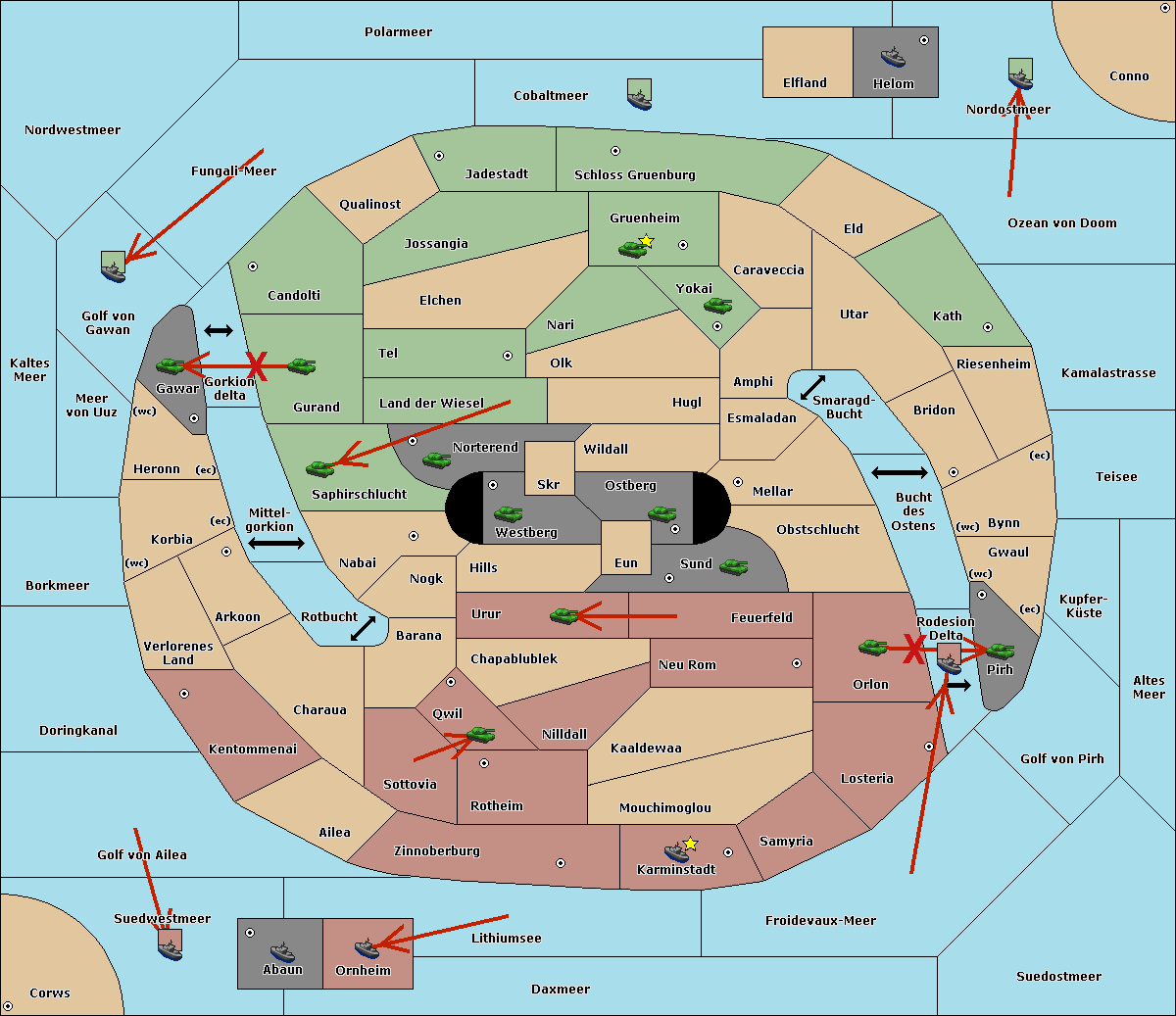 The fleet at Schloss Gruenburg move to Ozean von Doom.
