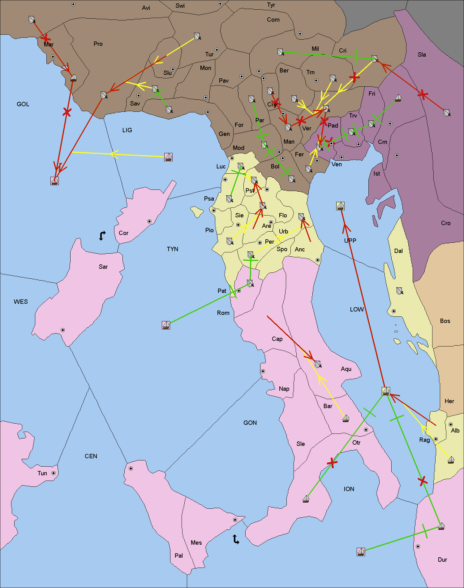 The fleet at Tyrrhenian Sea support hold to Rome.