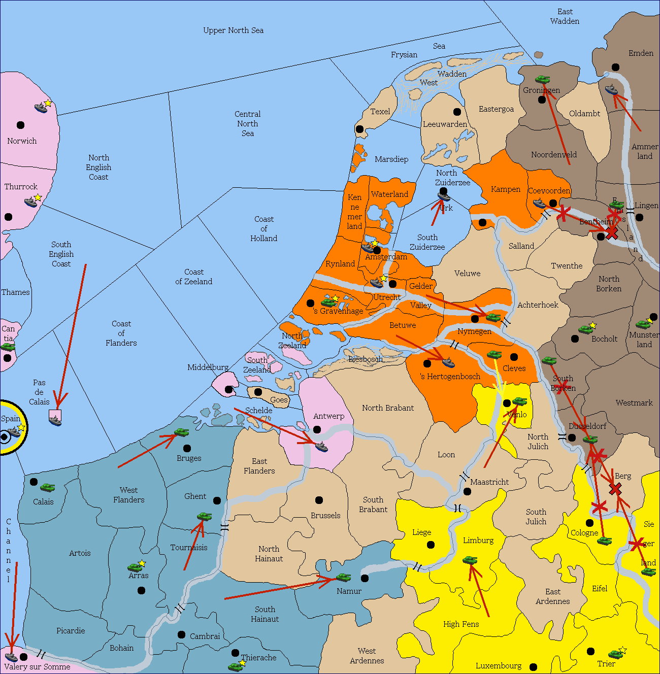 Build army at Utrecht.