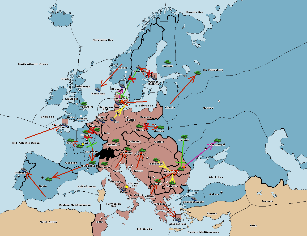 The fleet at Berlin move to Baltic Sea.
