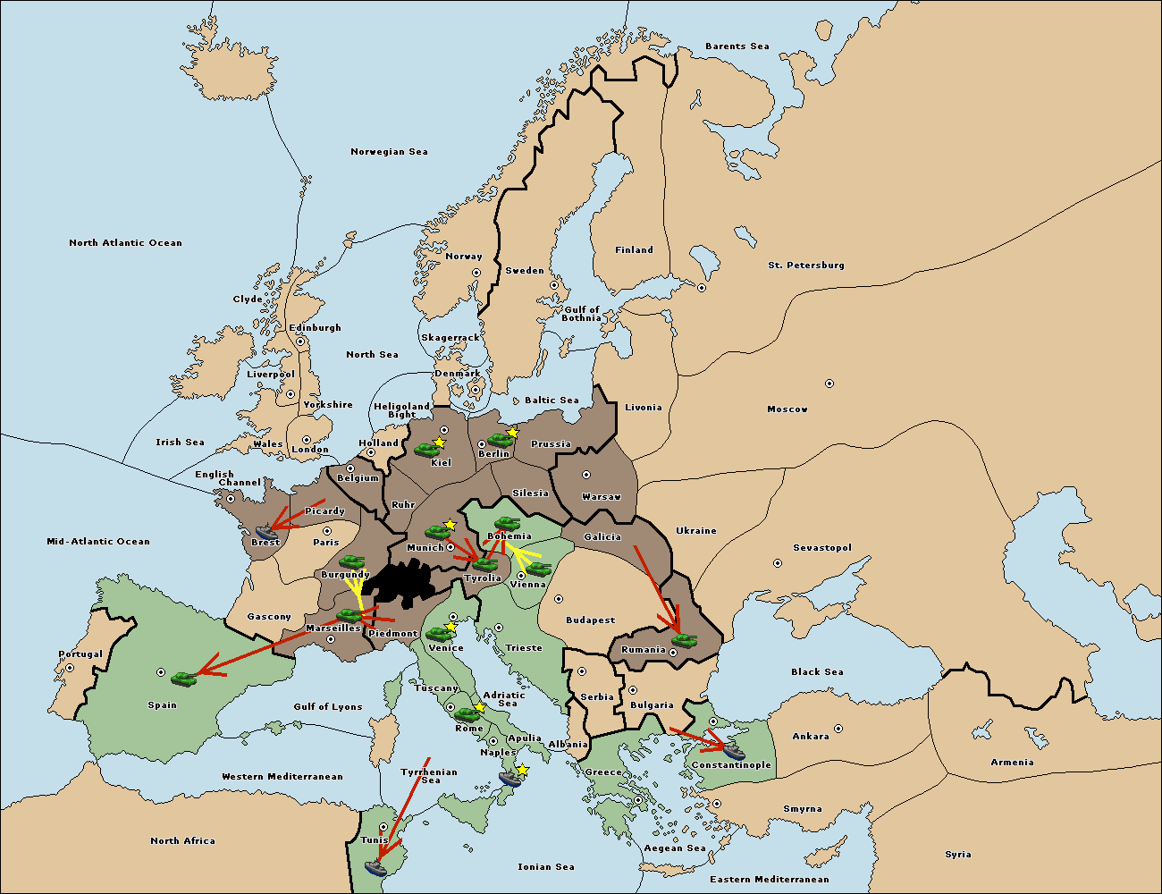 The fleet at Spain (South Coast) support hold to Marseilles.