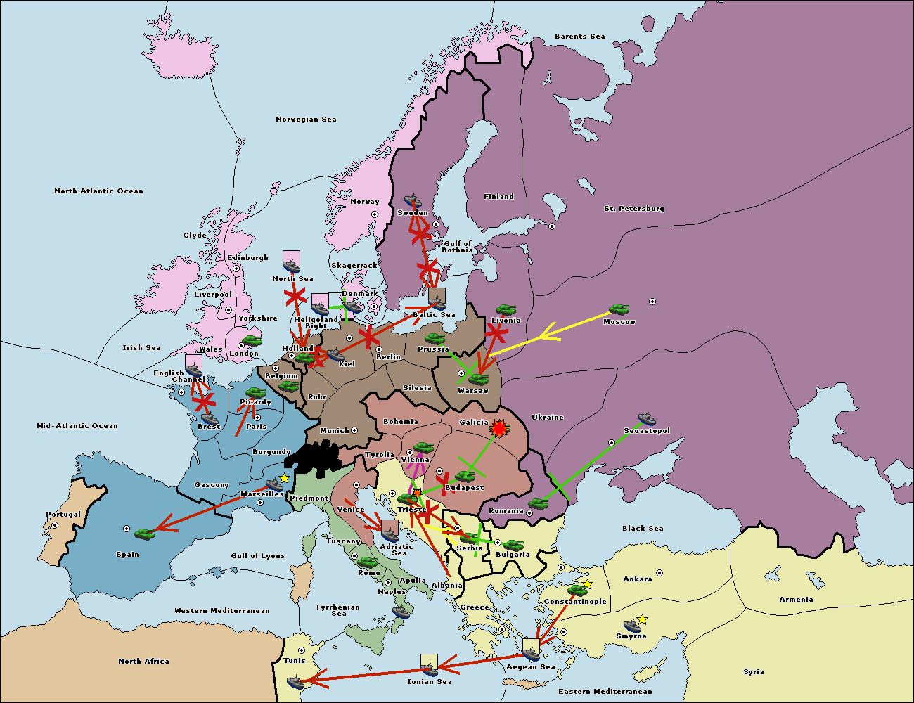 The fleet at Bulgaria (South Coast) move to Aegean Sea.