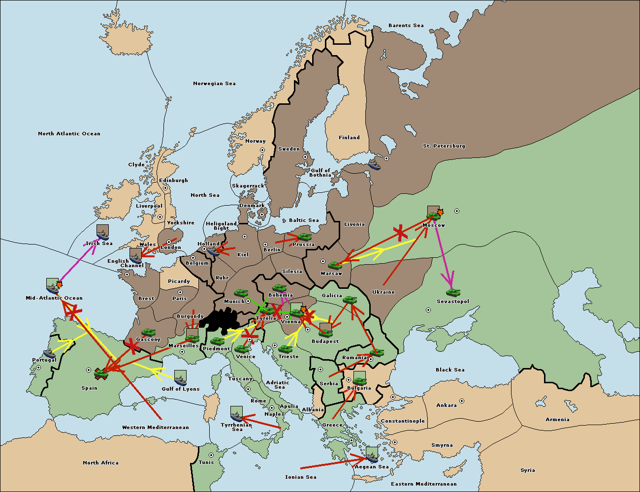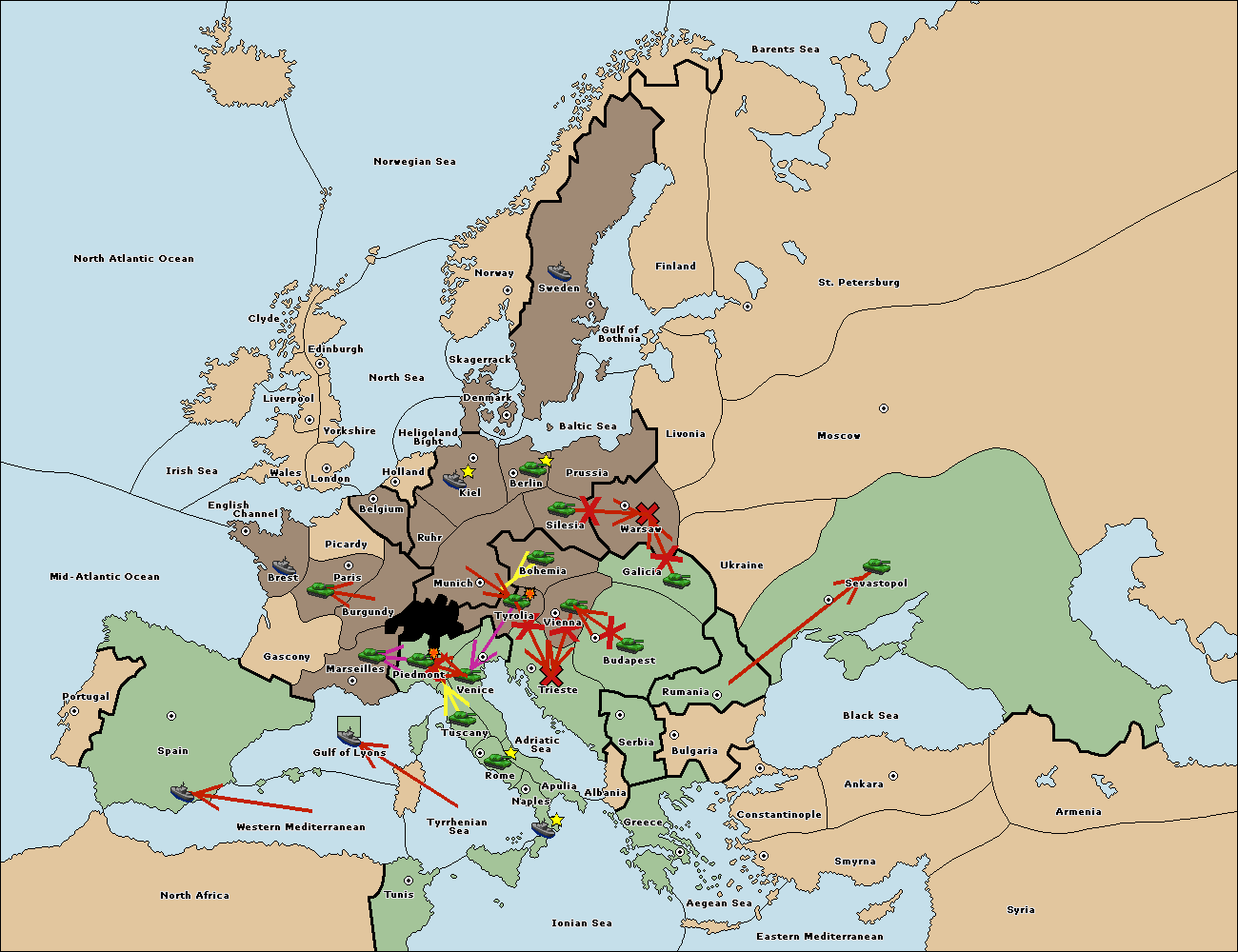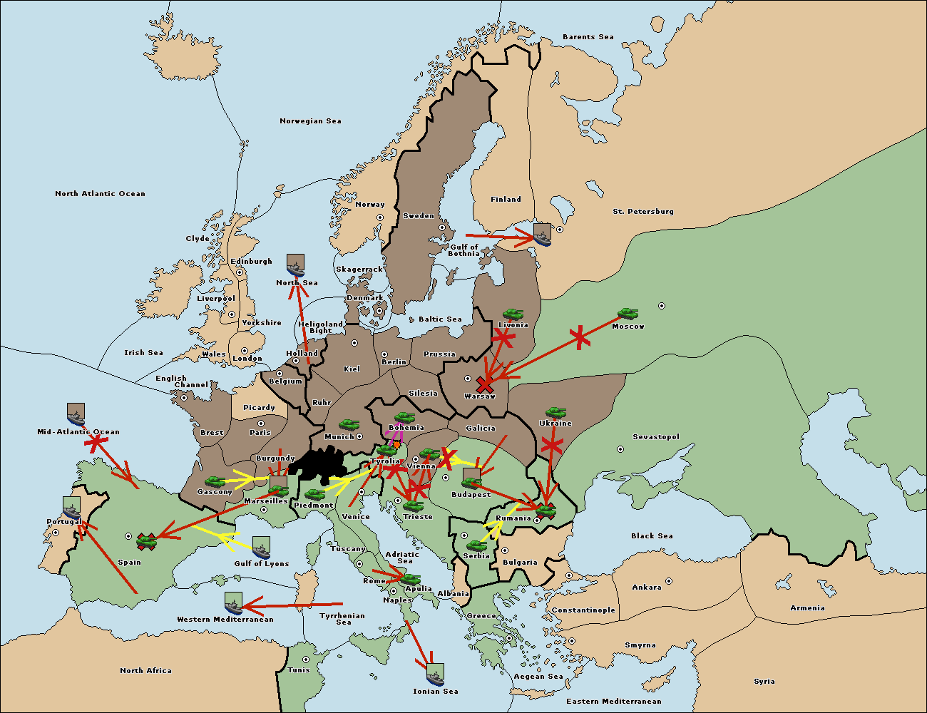 The fleet at Spain (South Coast) support move to Marseilles from Piedmont.