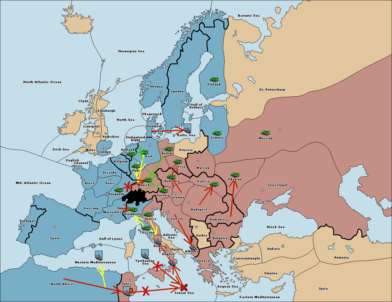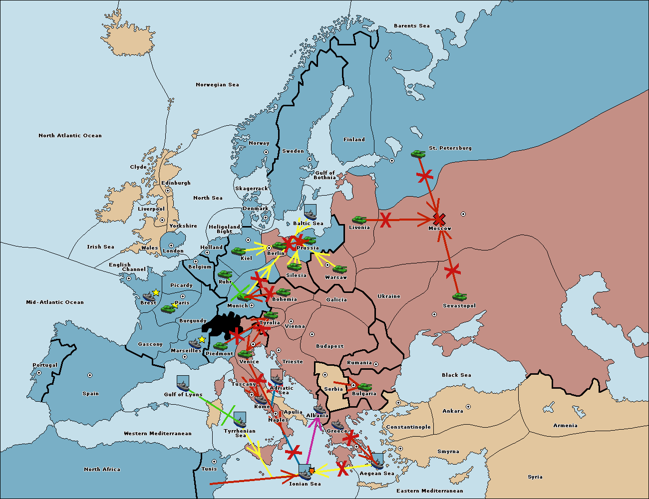 The fleet at Ionian Sea support move to Naples from Tyrrhenian Sea.