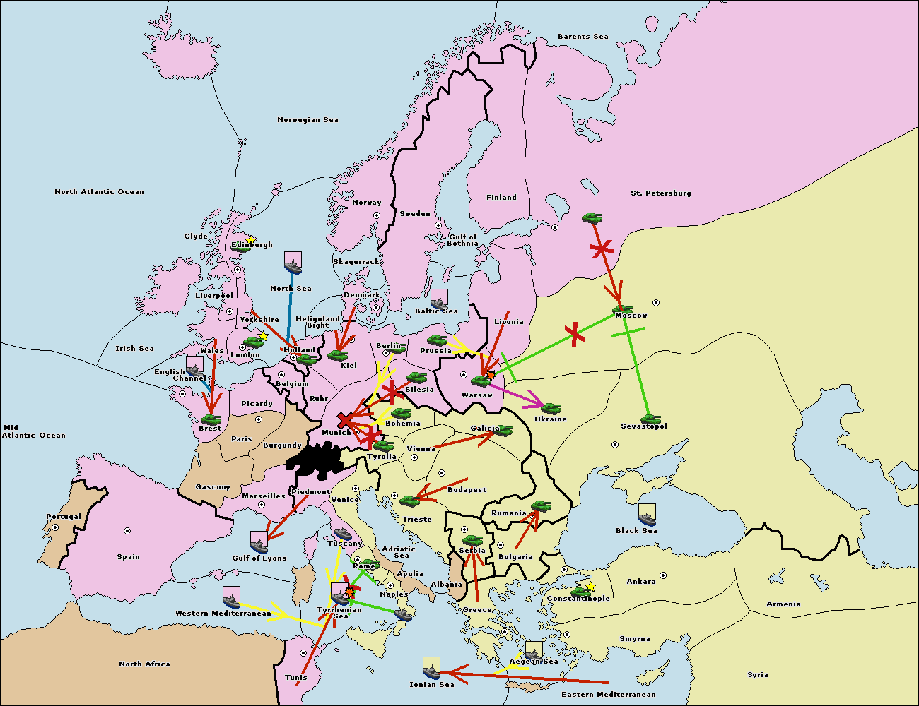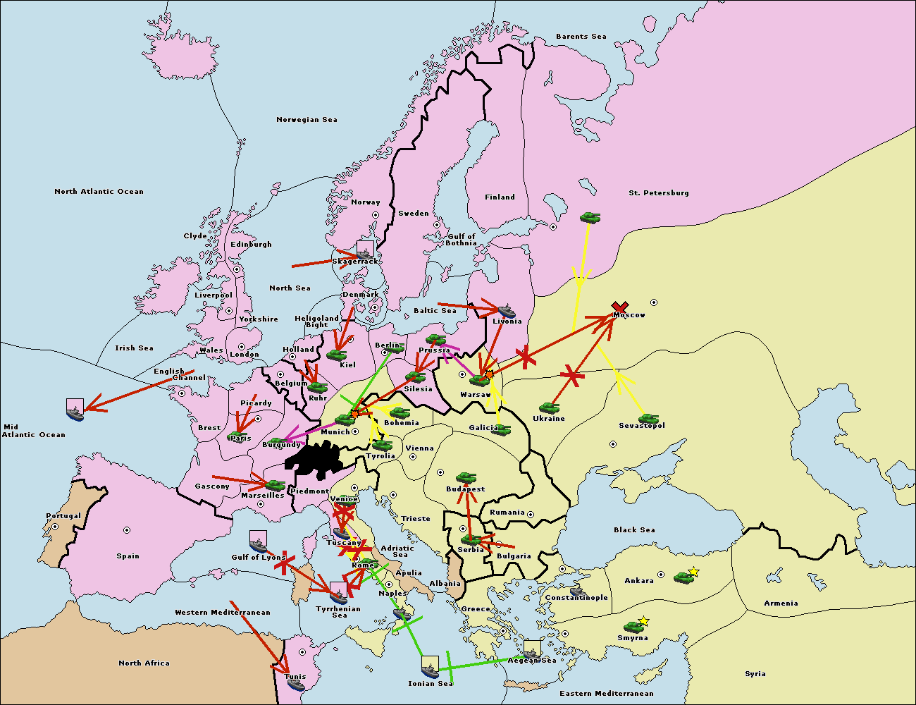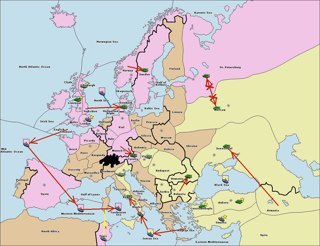 The fleet at Mid-Atlantic Ocean move to Western Mediterranean.