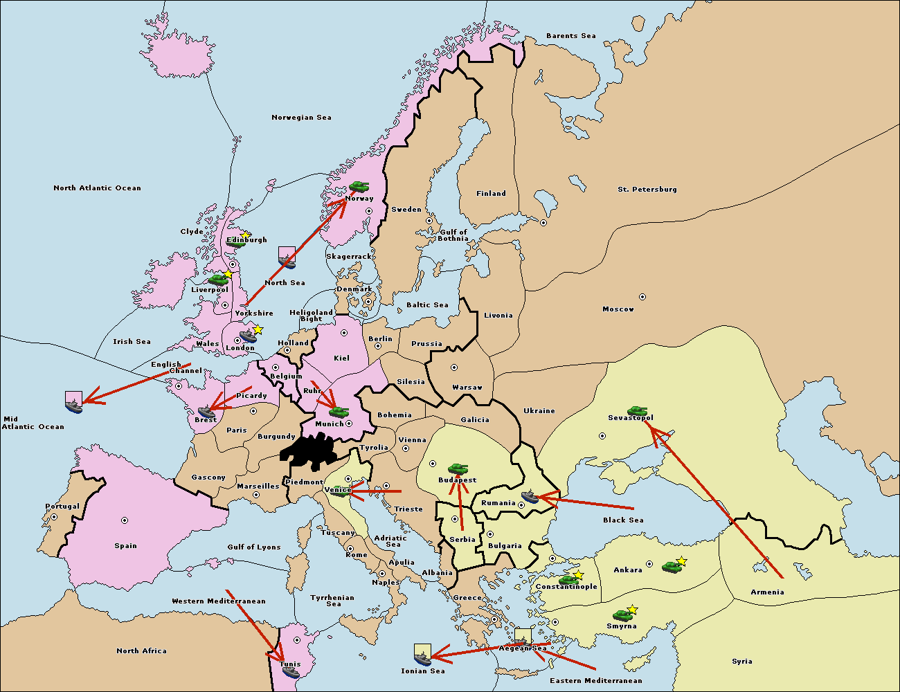 The fleet at Rumania move to Black Sea.