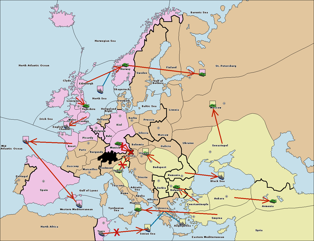 The army at Vienna support move to Tyrolia from Venice.