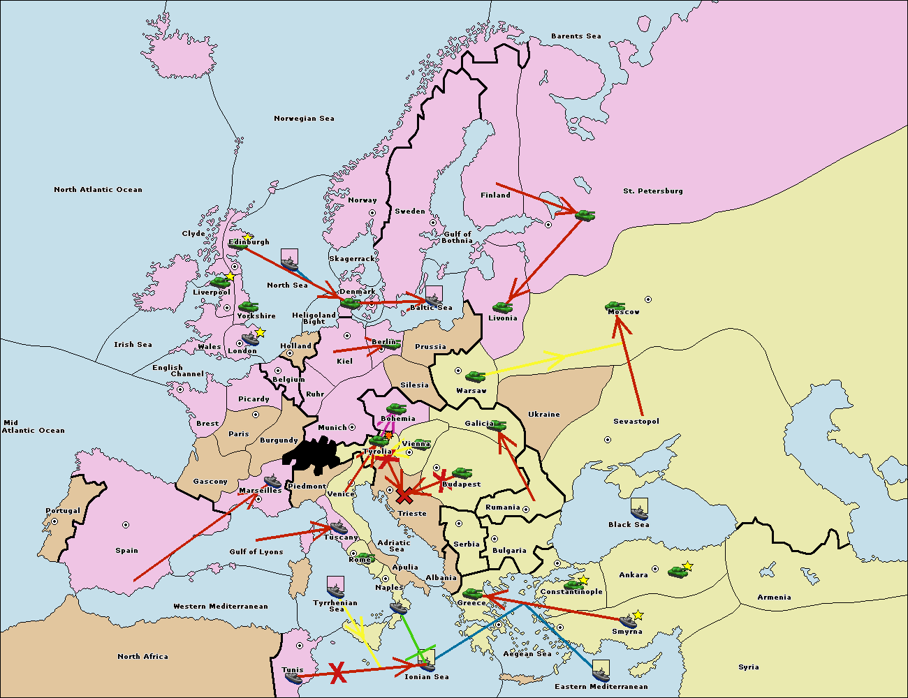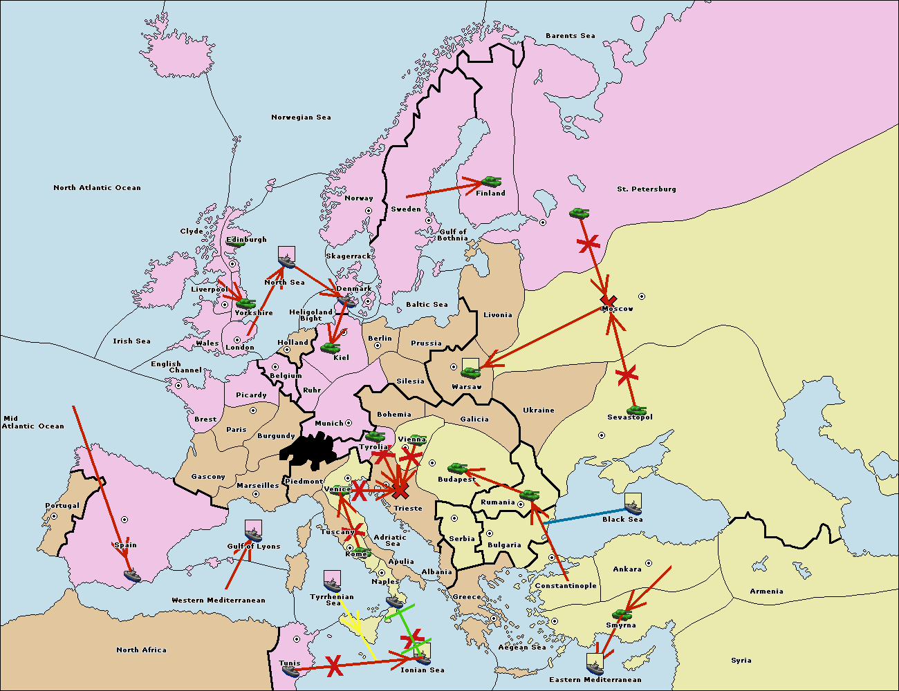 The army at Tyrolia move to Trieste.