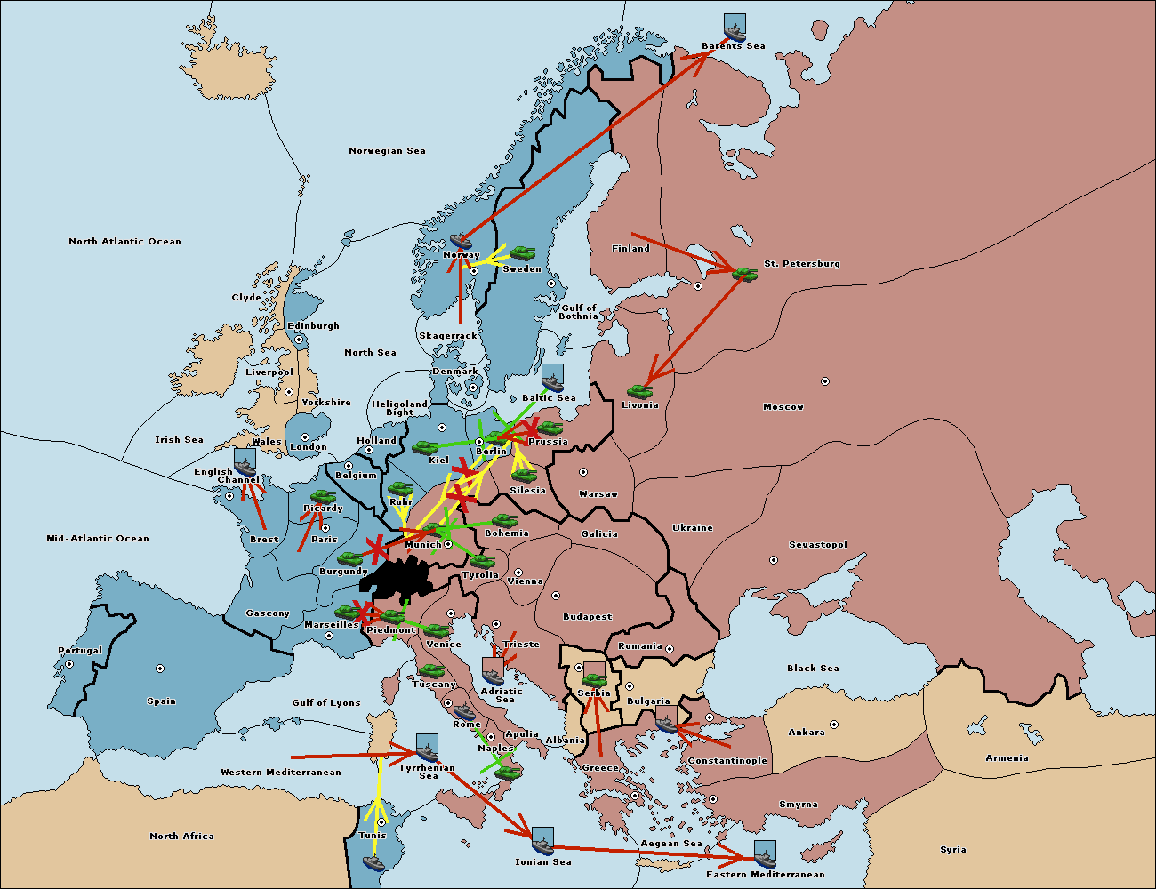 The army at Kiel support move to Munich from Tyrolia.
