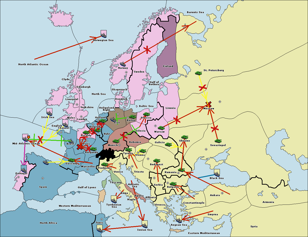 The fleet at Greece support move to Bulgaria from Constantinople.