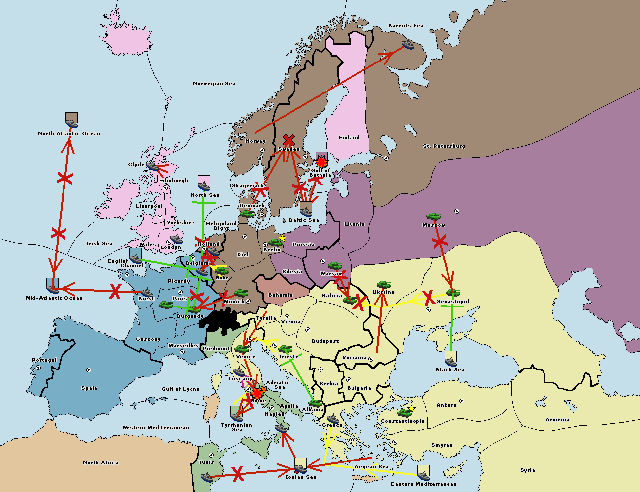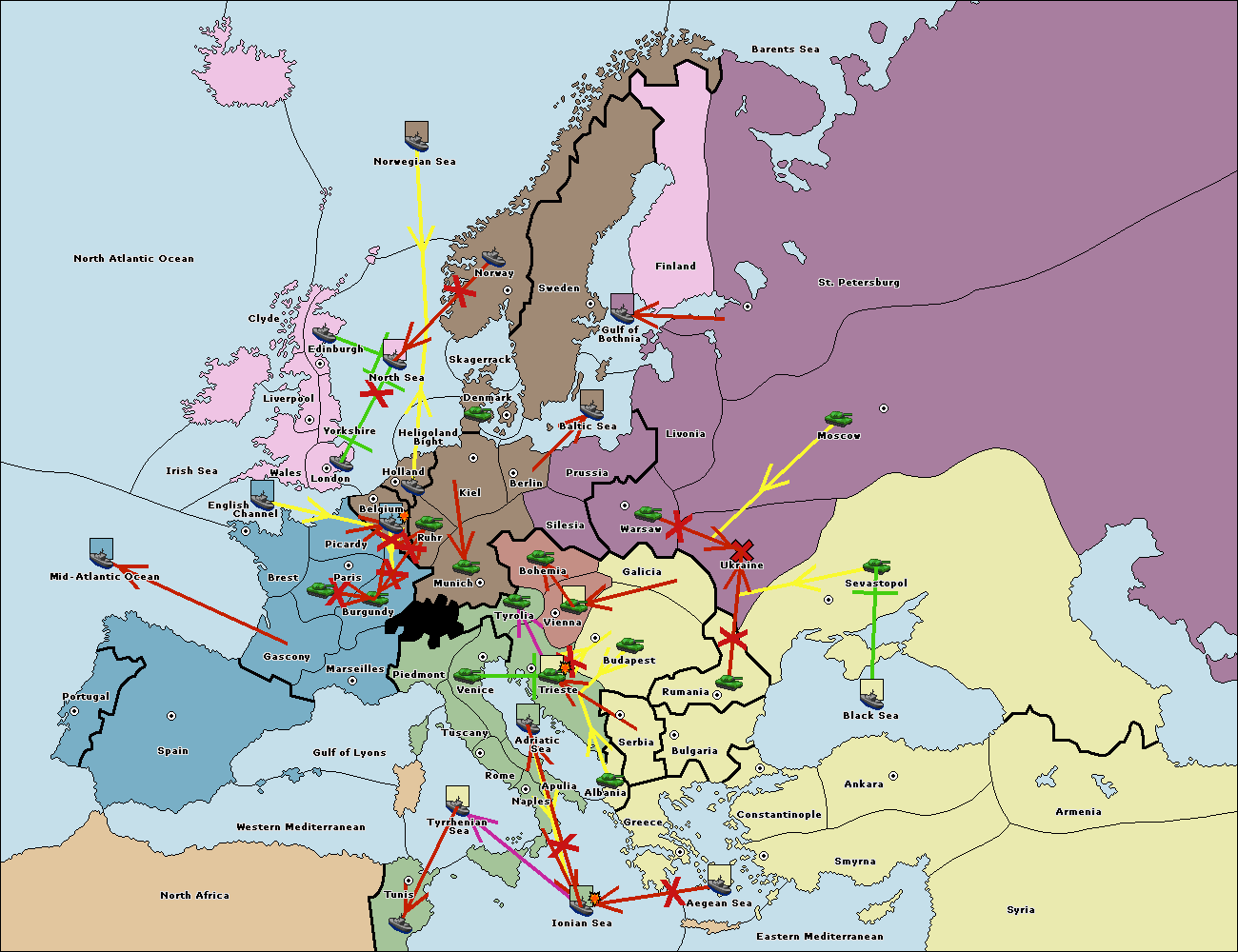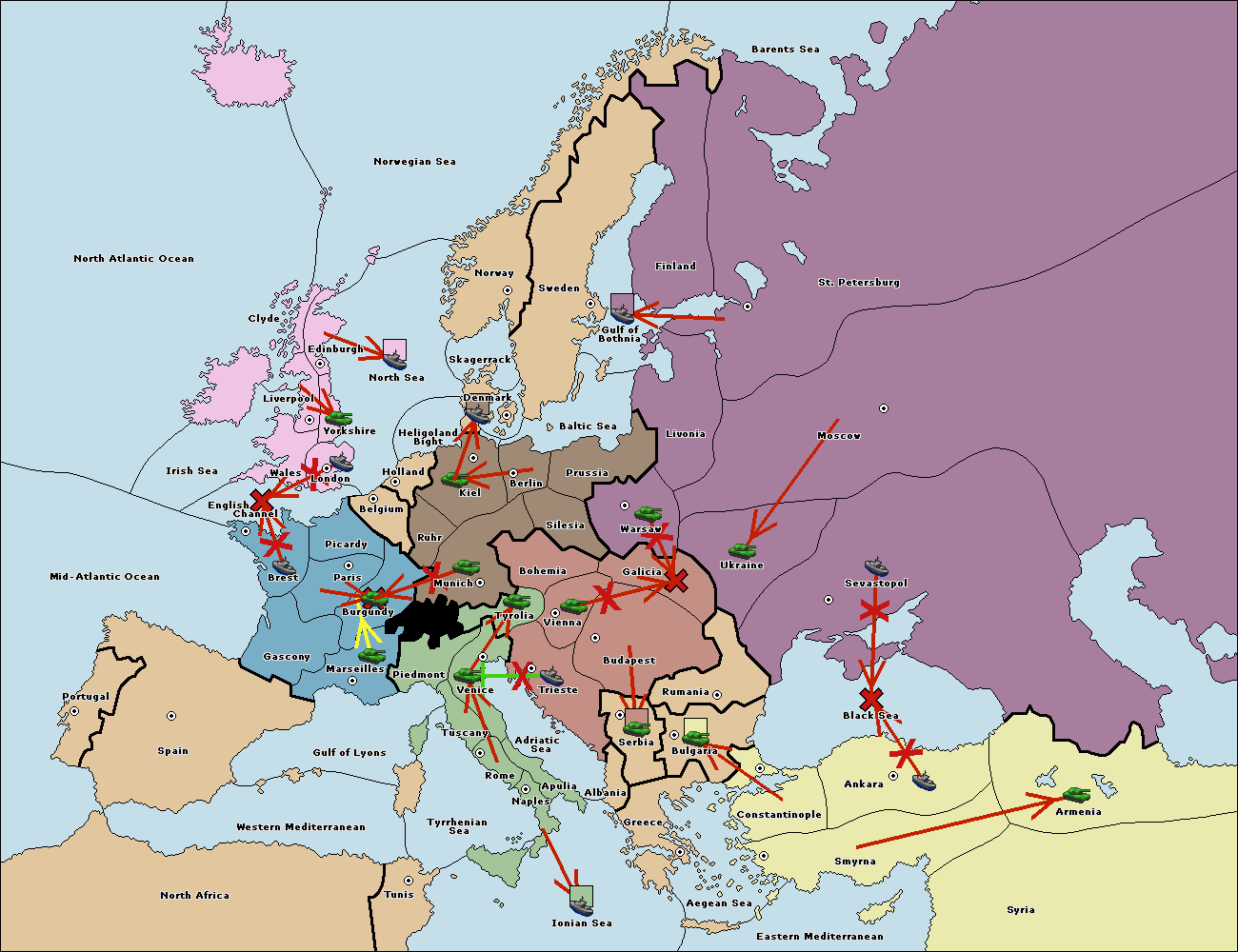 The fleet at Bulgaria (North Coast) move to Rumania.