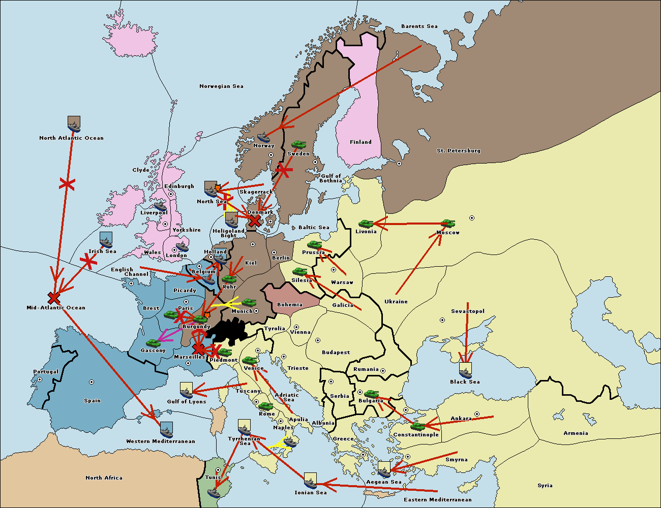 The fleet at Western Mediterranean move to Gulf of Lyons.