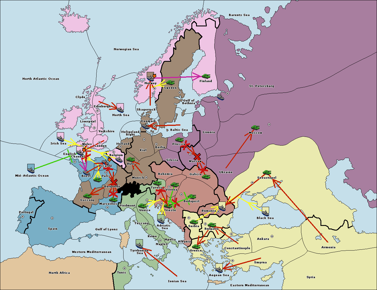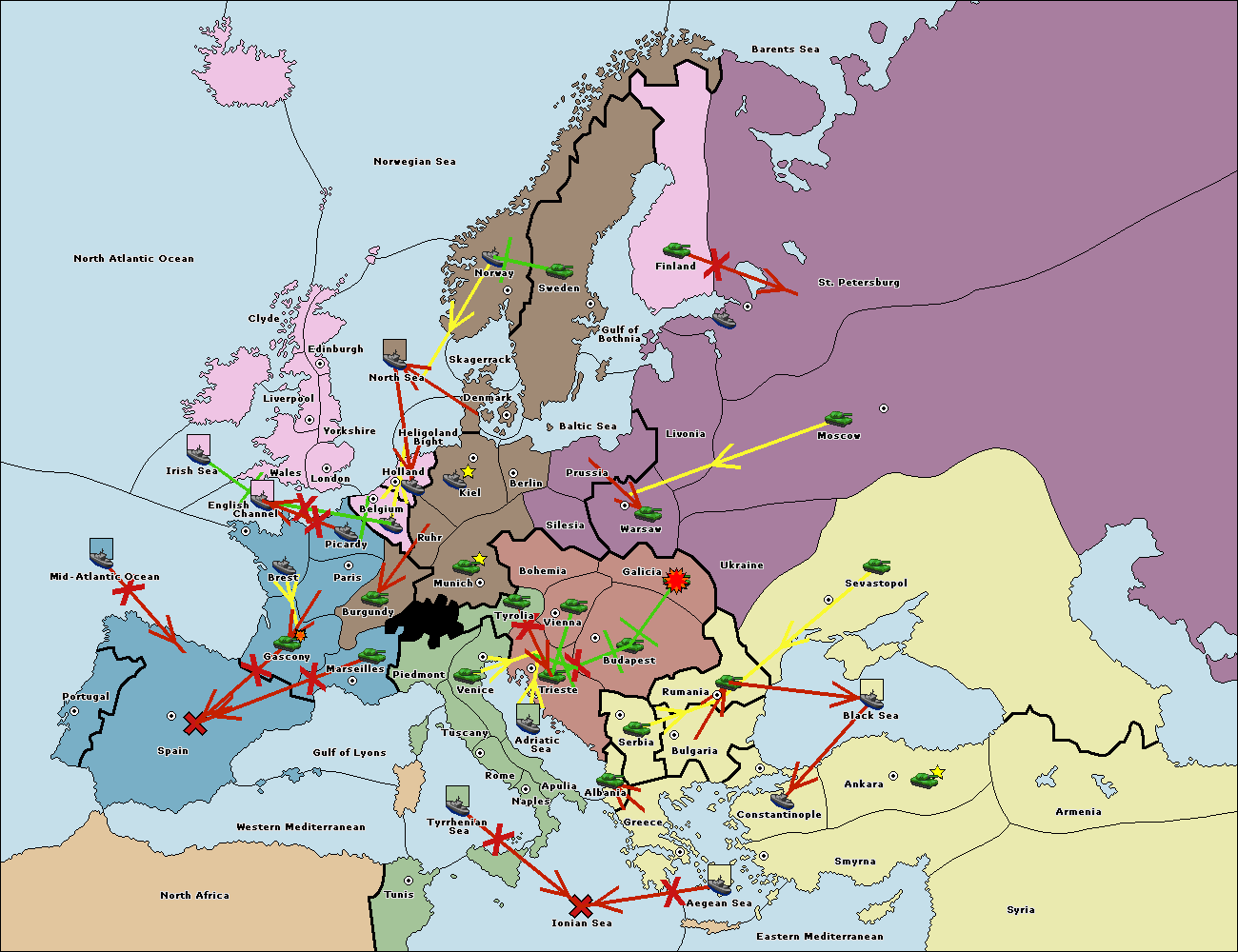 The fleet at Sevastopol support move to Rumania from Galicia.