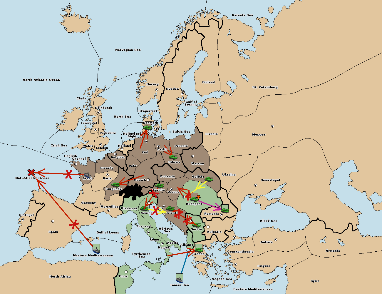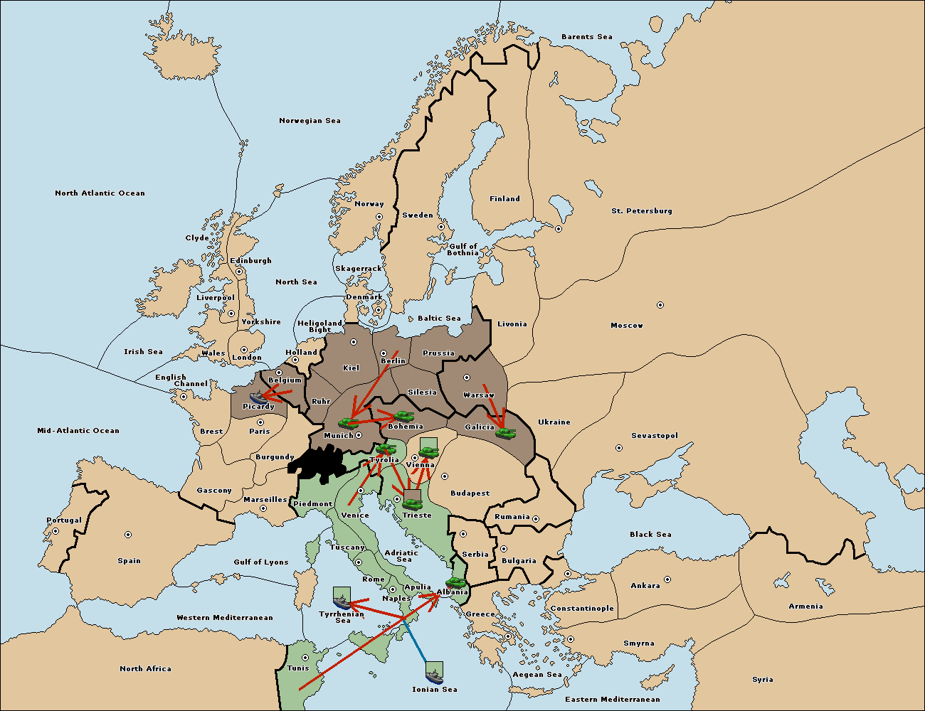 The army at Tyrolia move to Trieste.