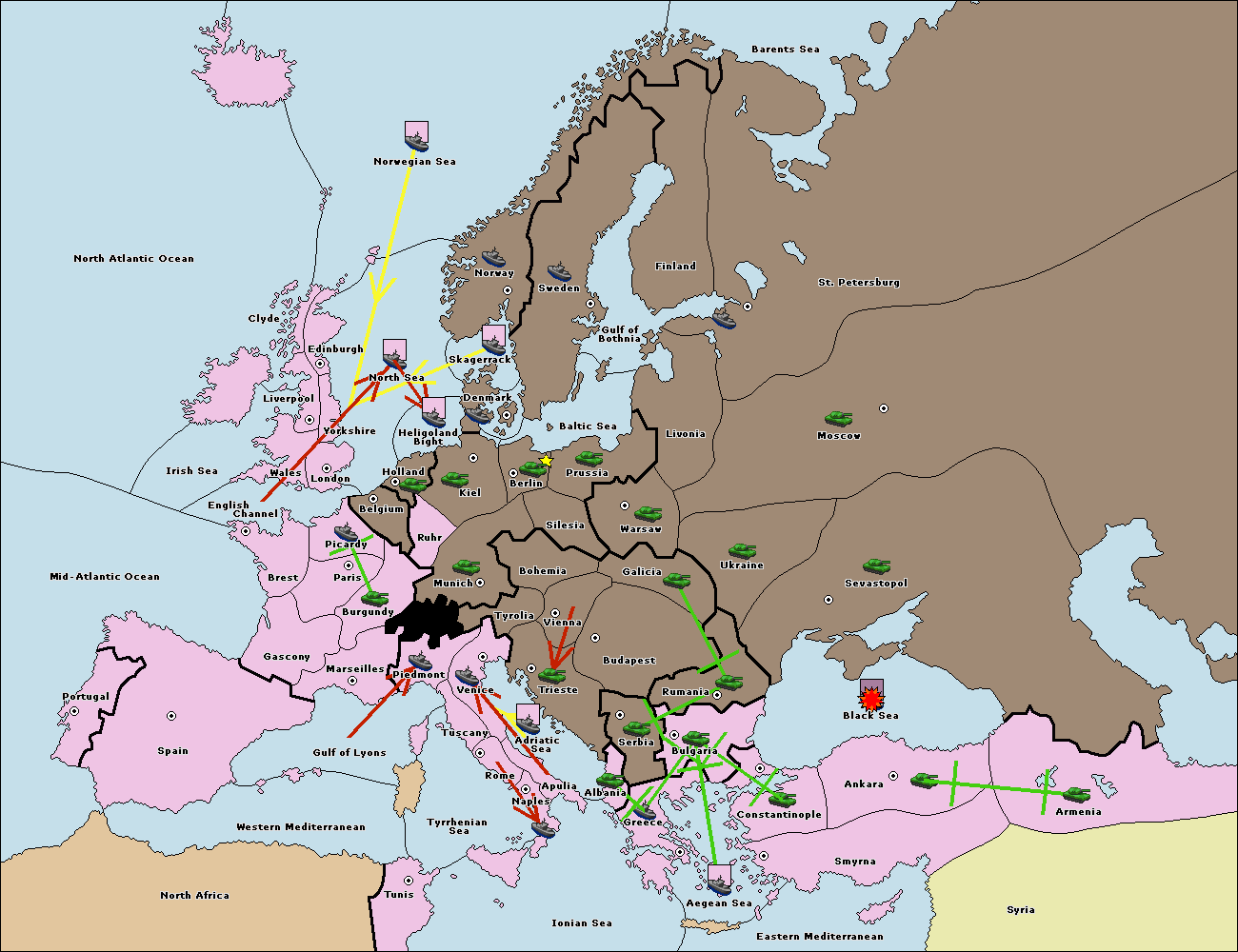 The fleet at Black Sea support move to Bulgaria from Constantinople.