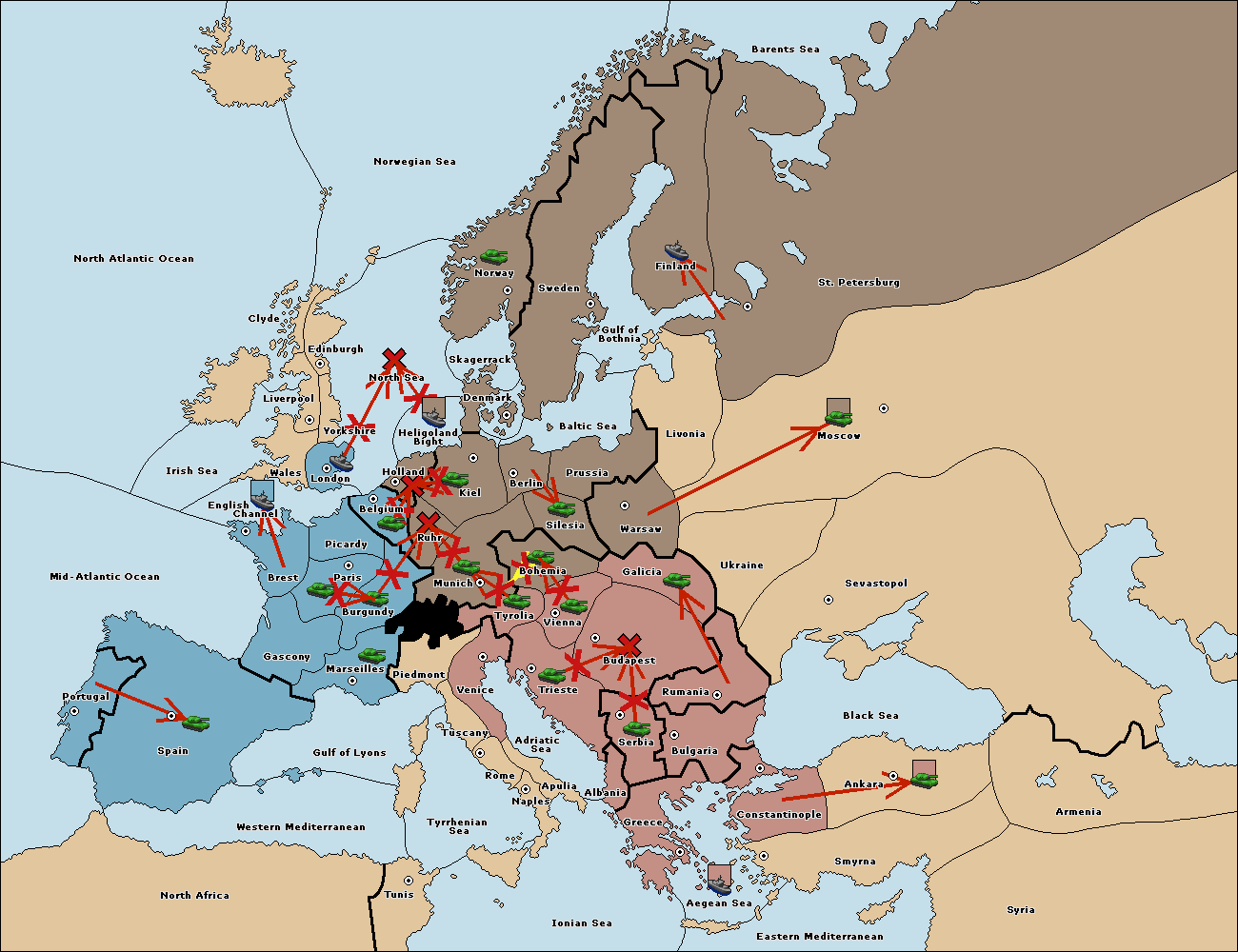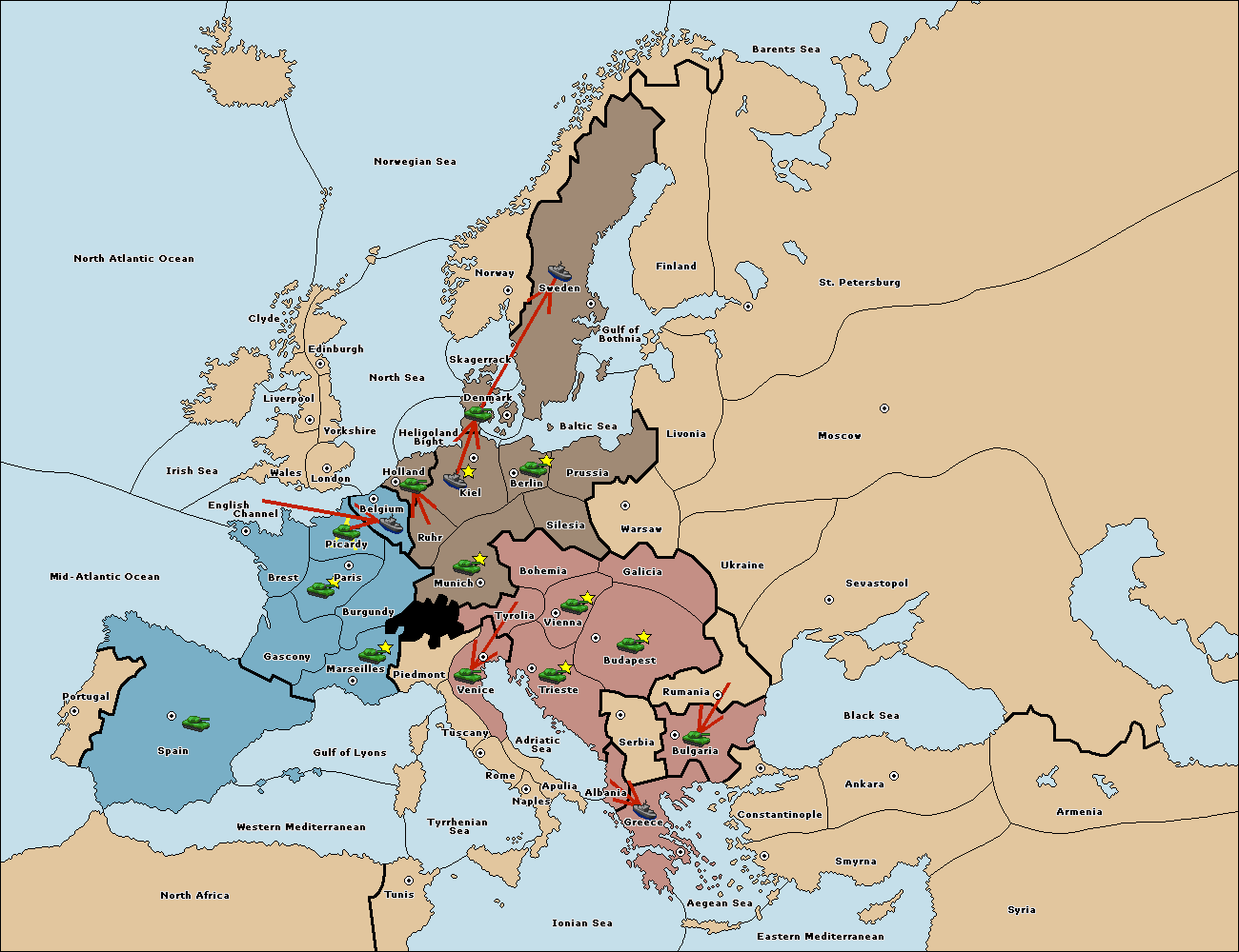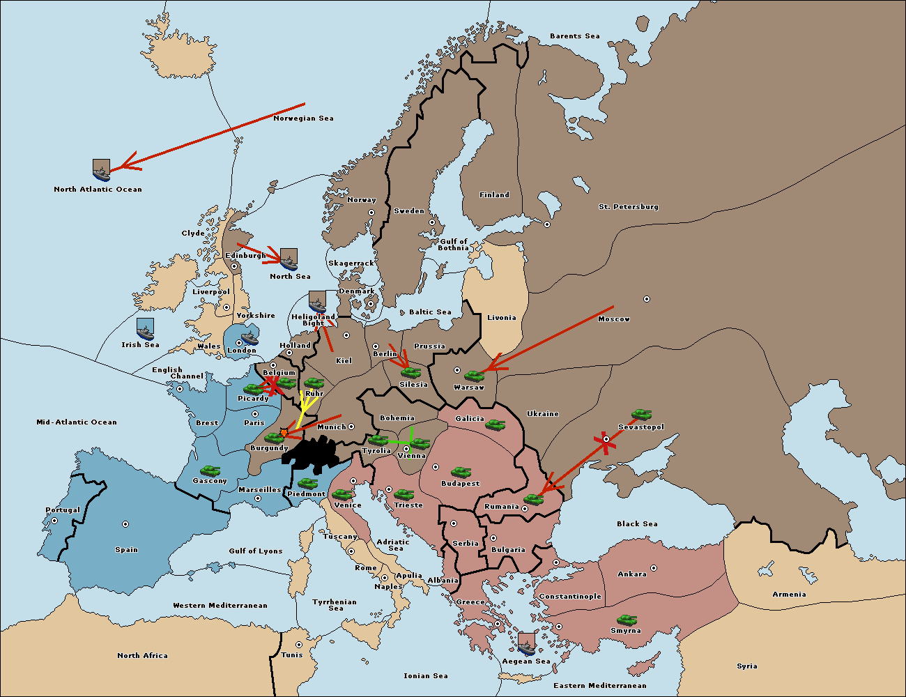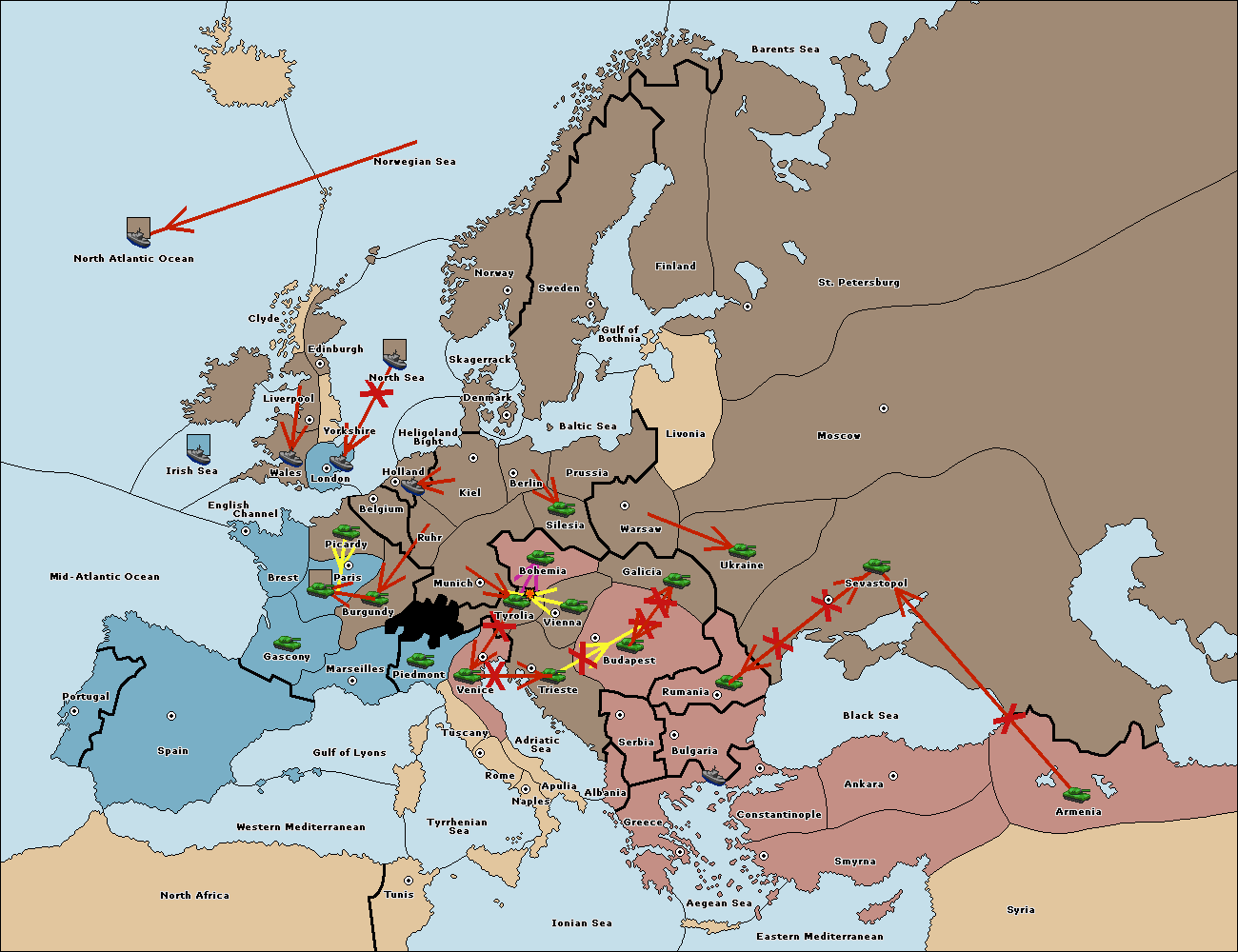 The fleet at Gulf of Bothnia move to St. Petersburg (South Coast).