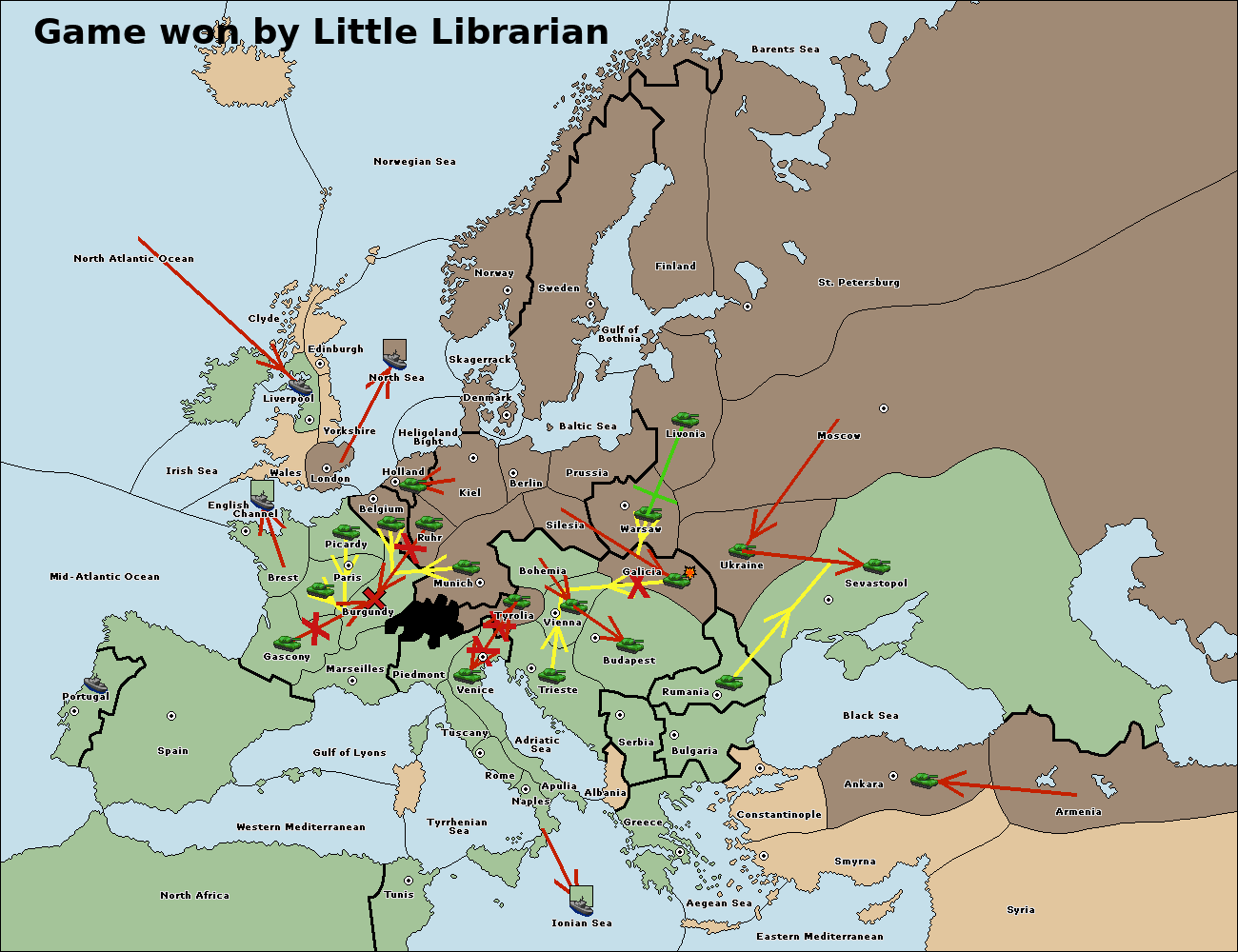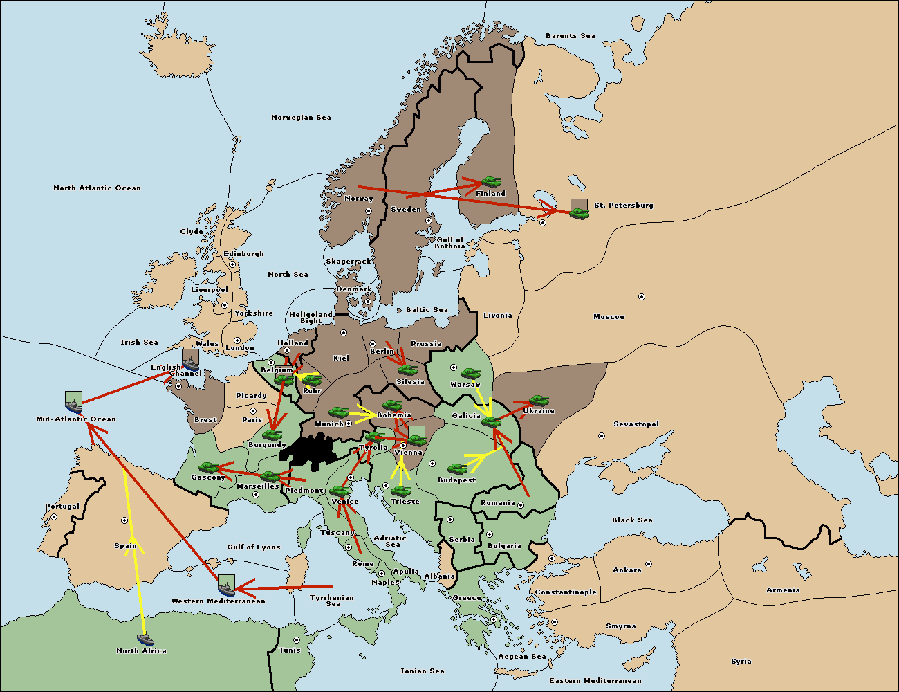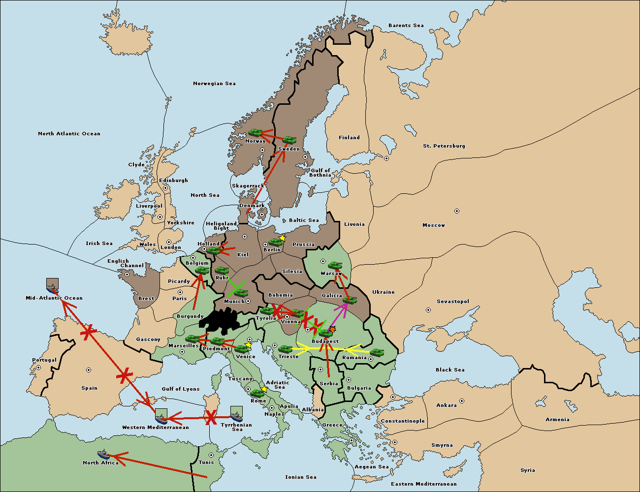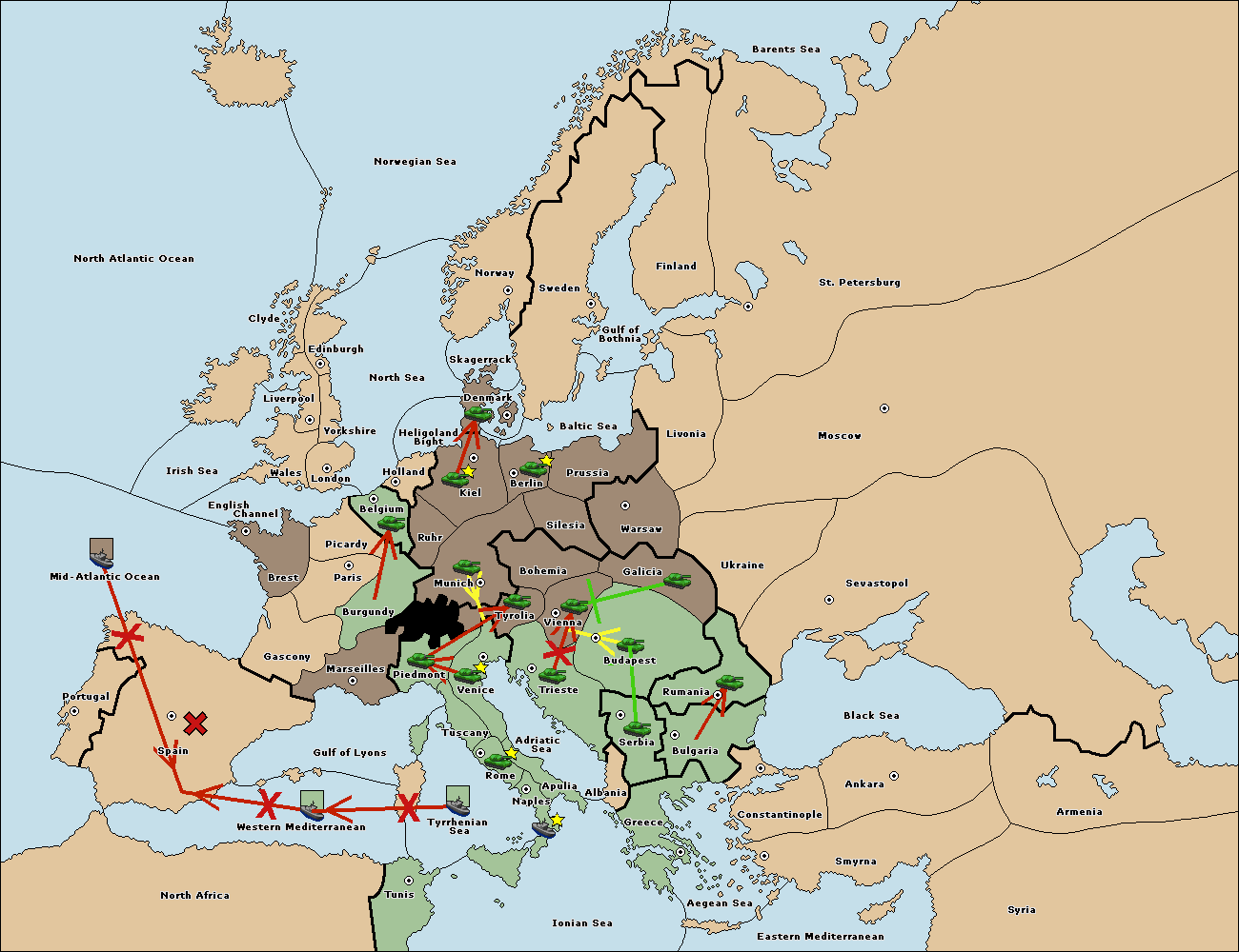 The fleet at North Africa move to Mid-Atlantic Ocean.