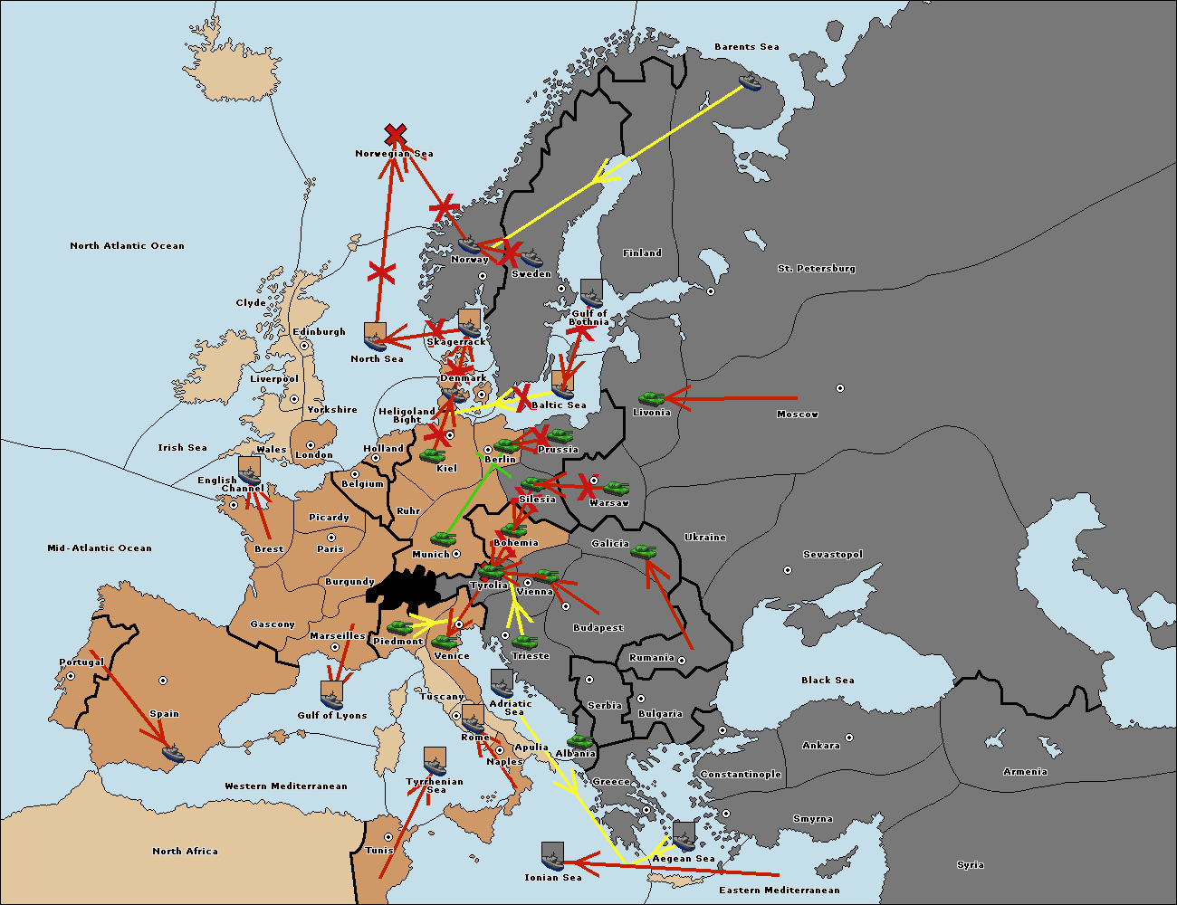 The army at Tyrolia support move to Munich from Silesia.