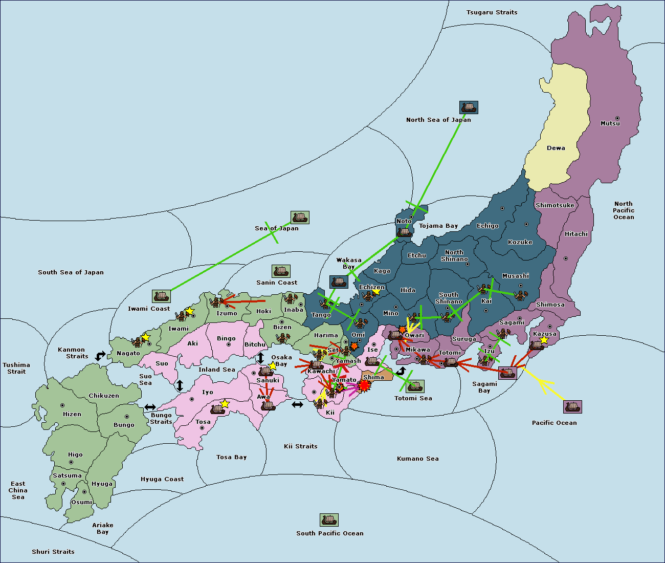 The army at Settsu (4) support move to Yamashiro (6) from Harima.