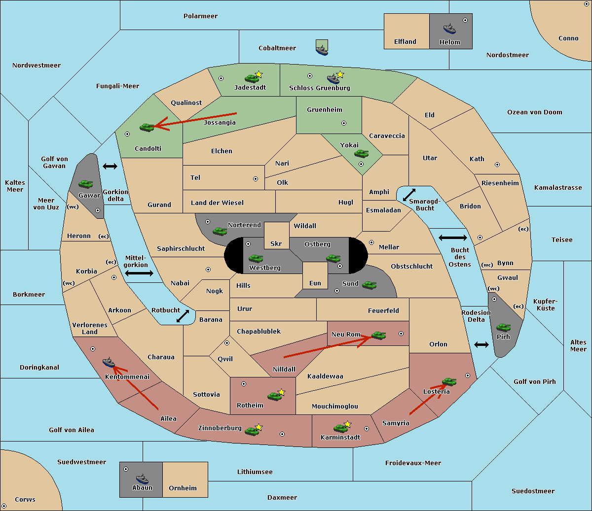 The fleet at Nordostmeer support move to Helom from Schloss Gruenburg.