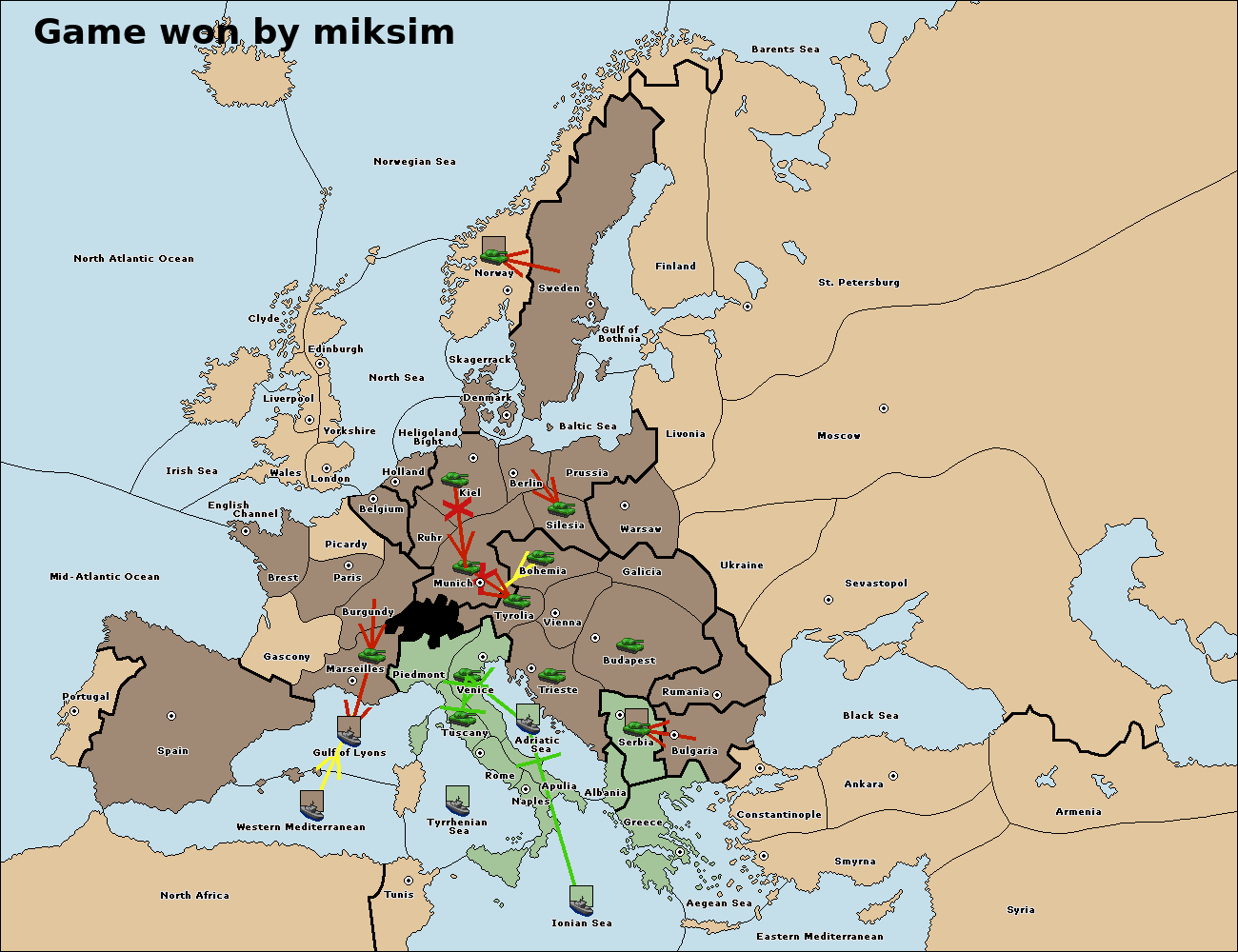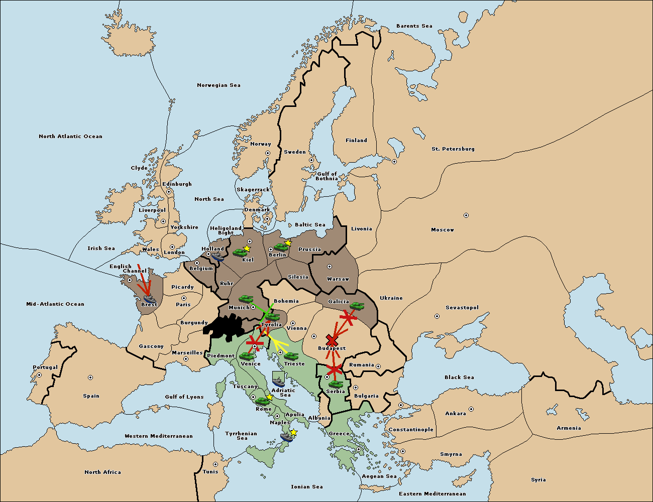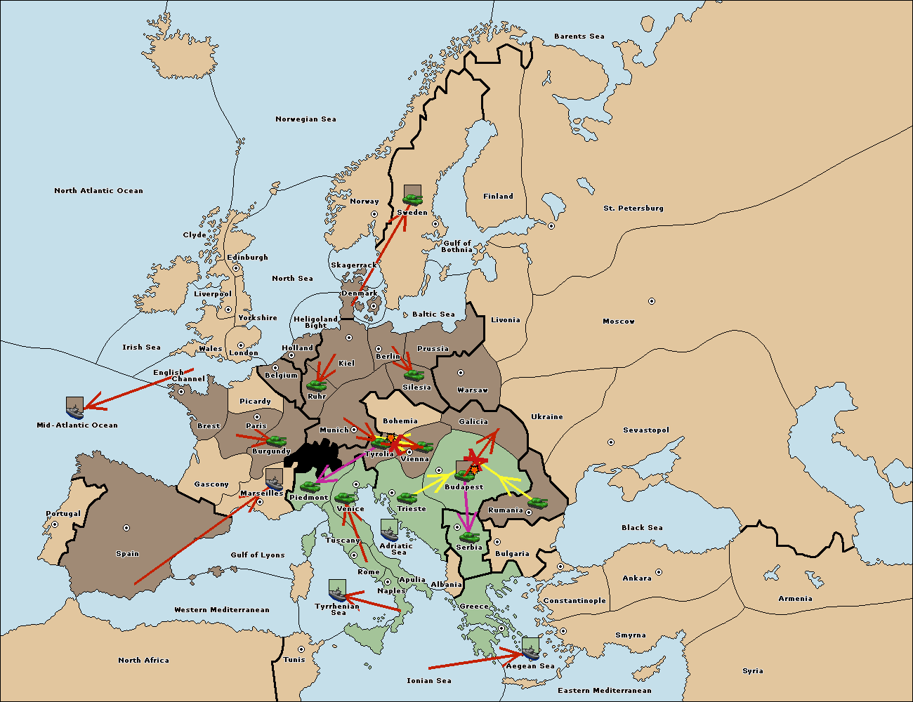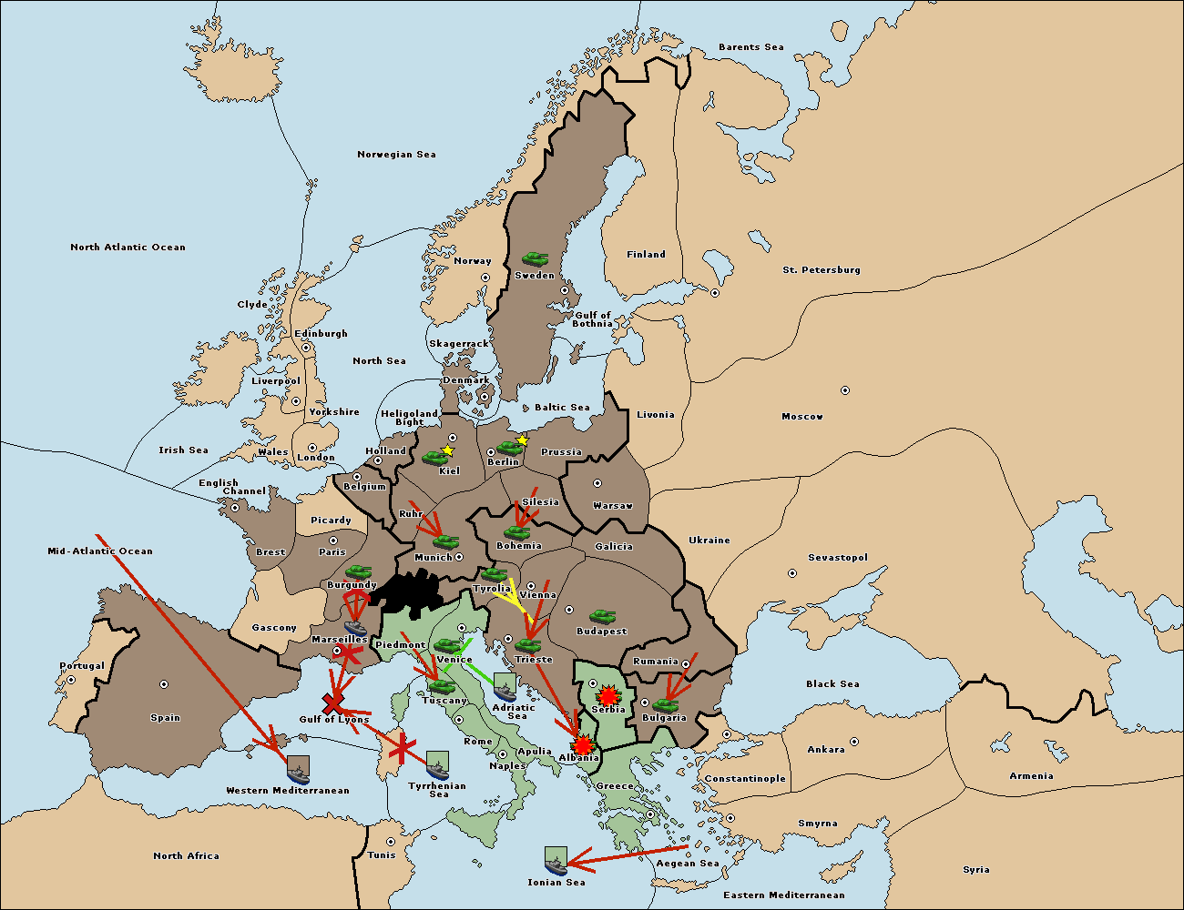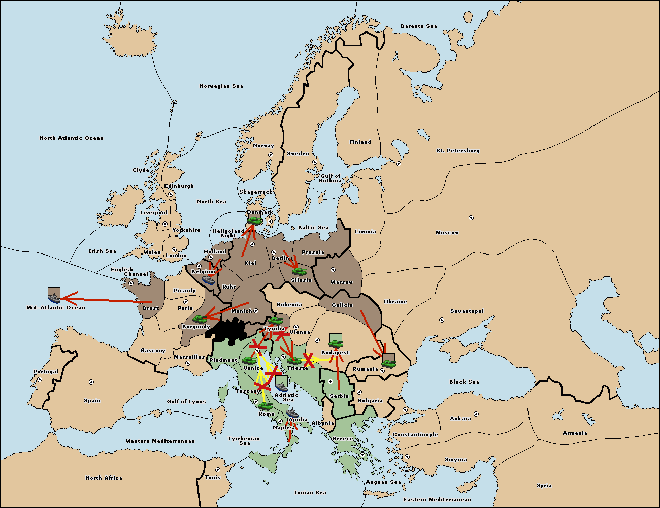 The fleet at Adriatic Sea support move to Venice from Tyrolia.