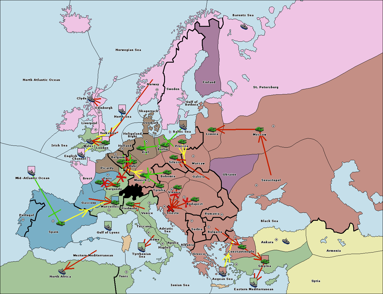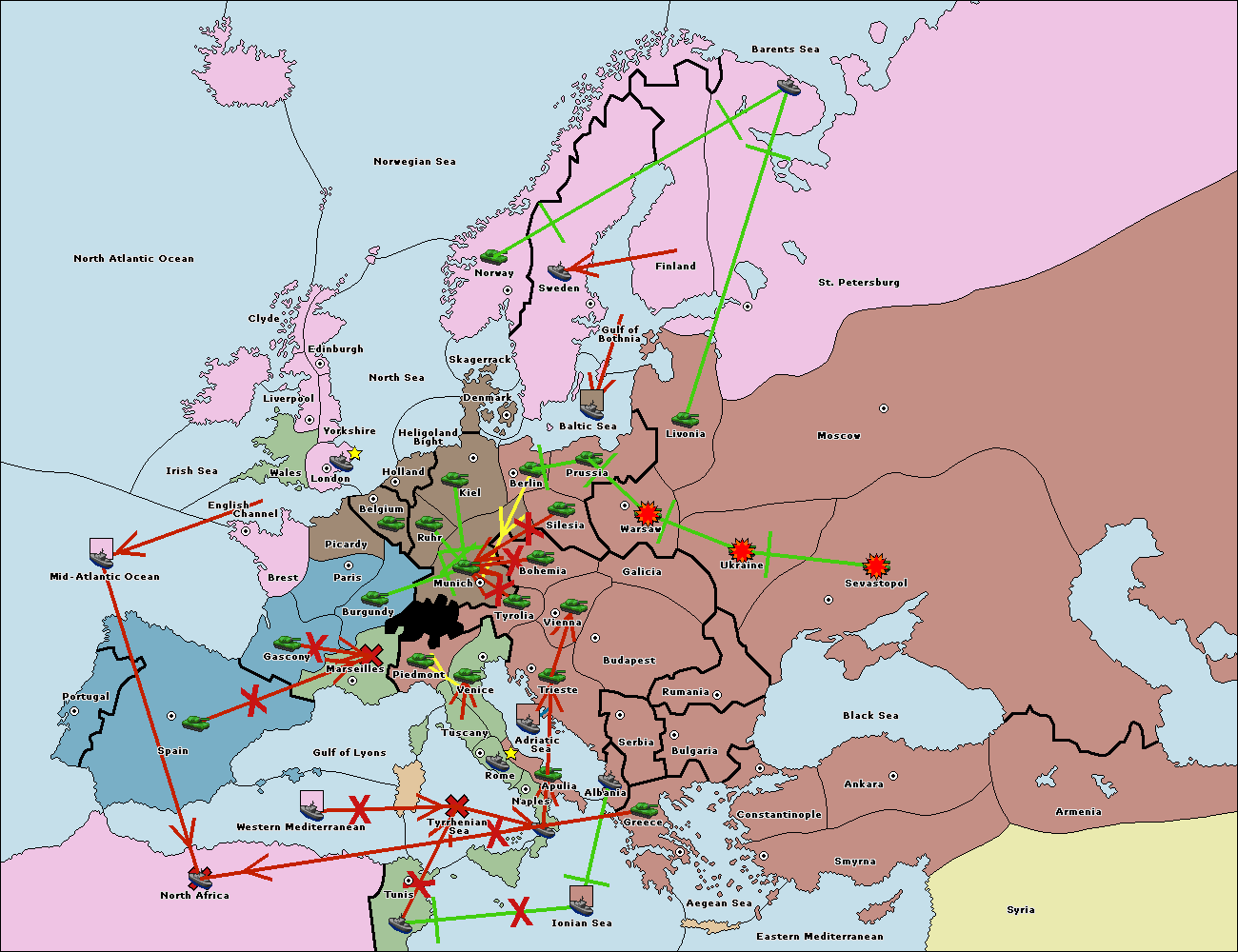 The fleet at Rumania support move to Sevastopol from Moscow.