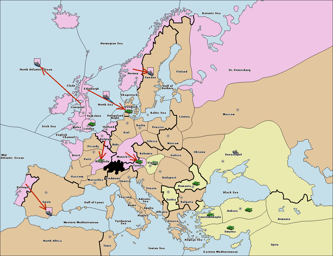 The fleet at Mid-Atlantic Ocean move to Western Mediterranean.