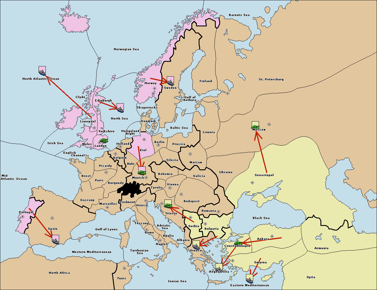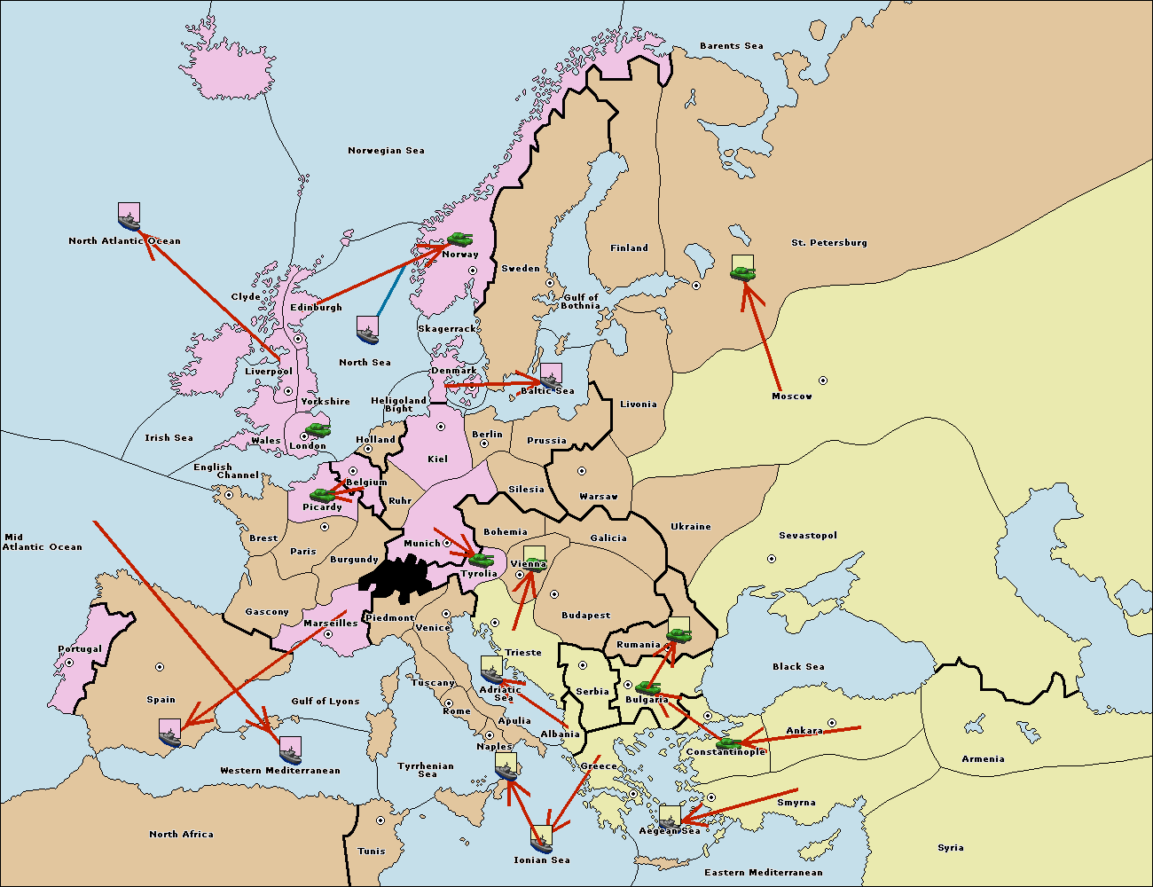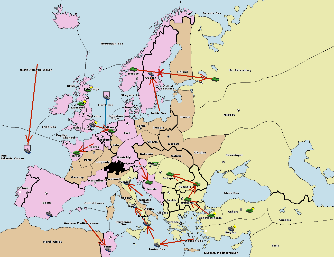 The fleet at Mid-Atlantic Ocean move to Western Mediterranean.