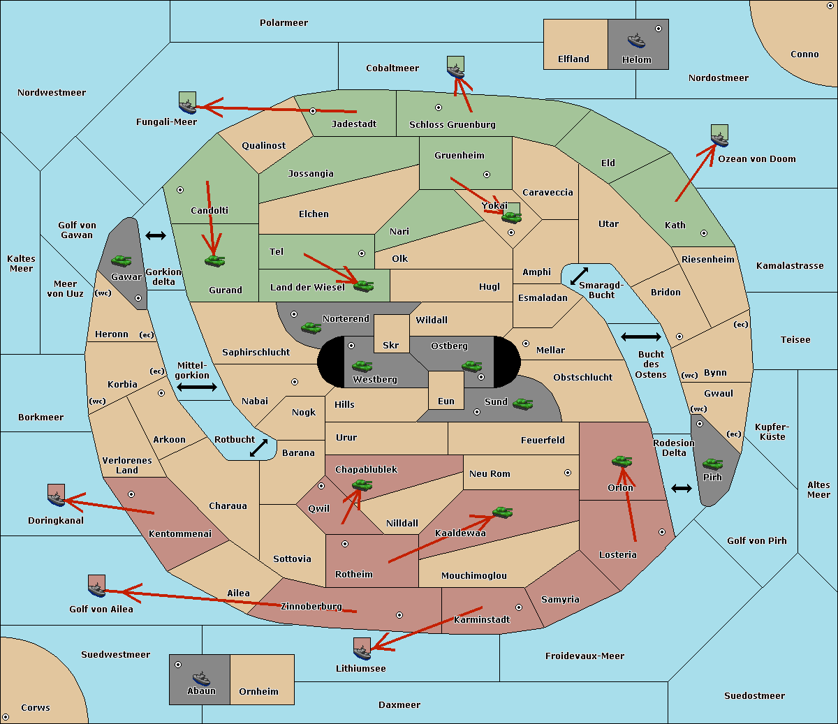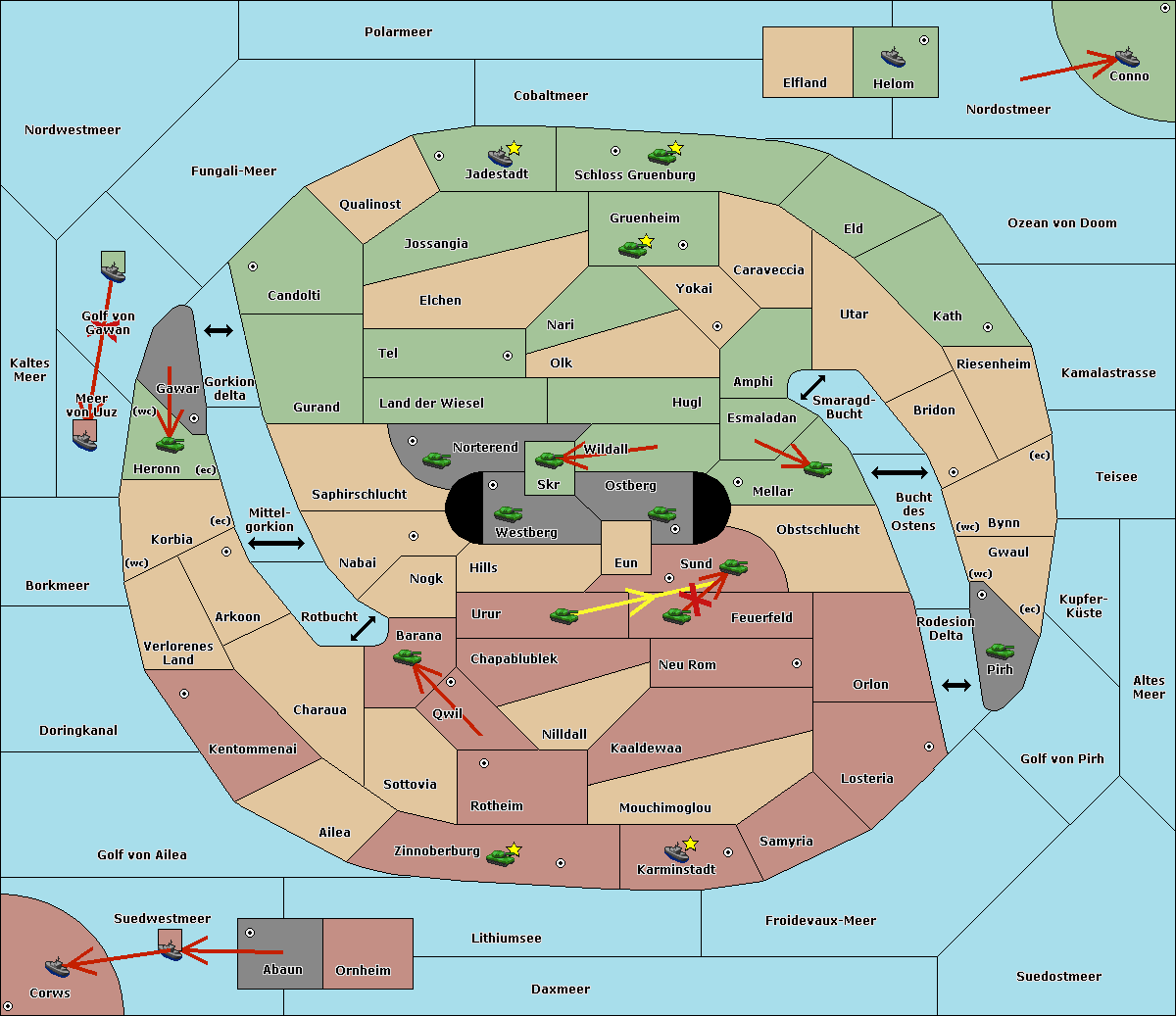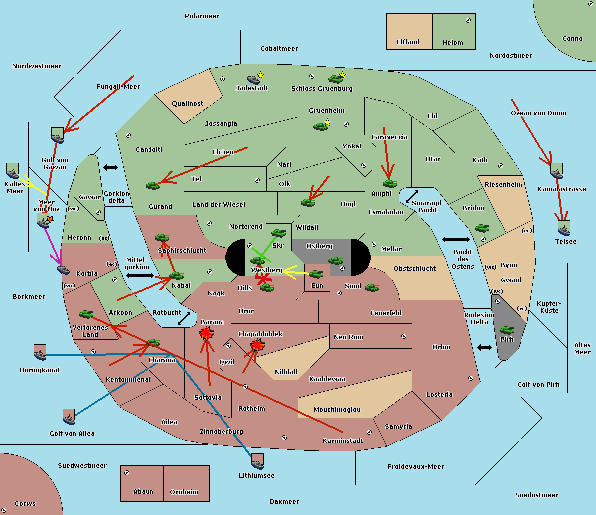 The fleet at Kaltes Meer support move to Meer von Uuz from Golf von Gawan.