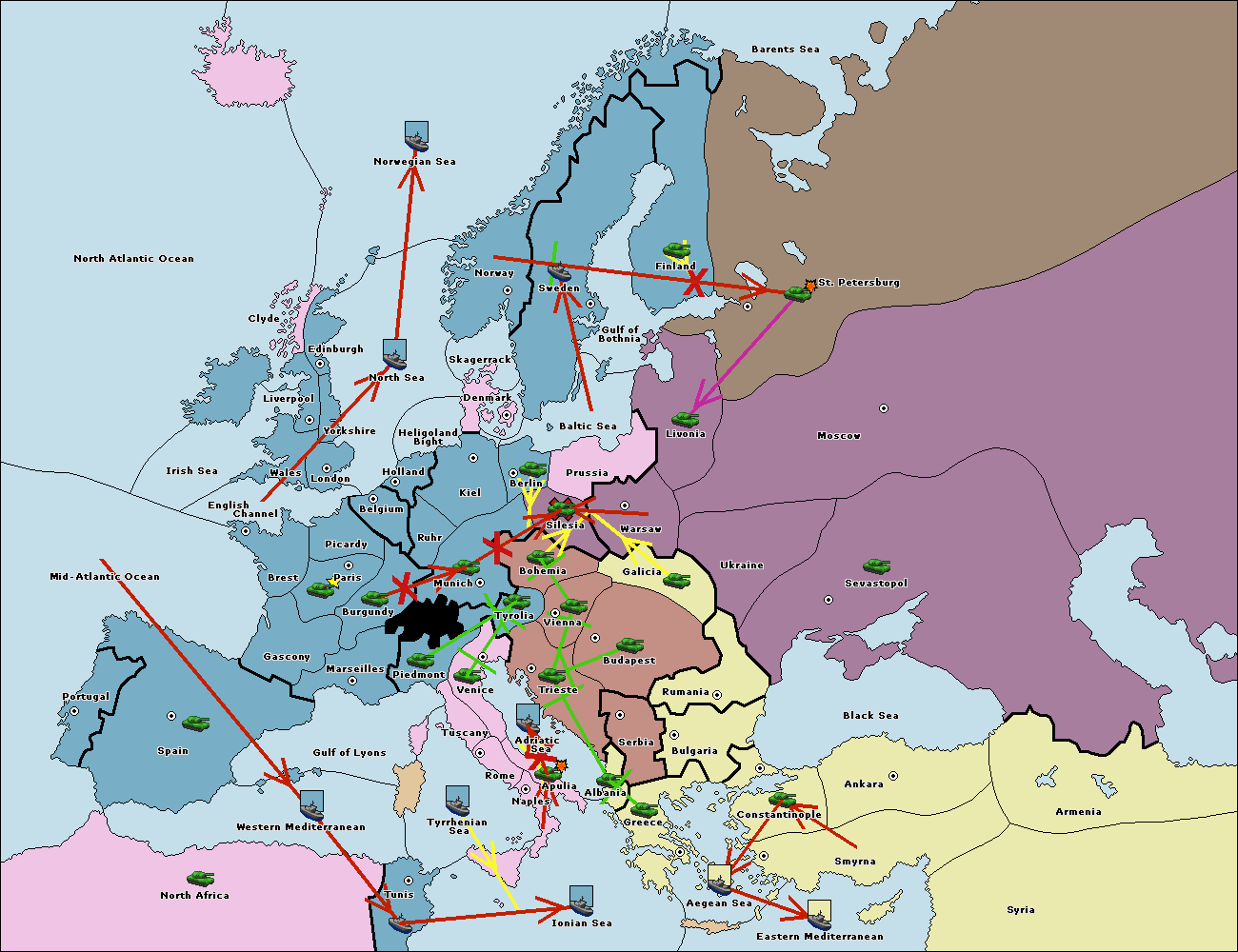 The army at Tyrolia support move to Bohemia from Vienna.