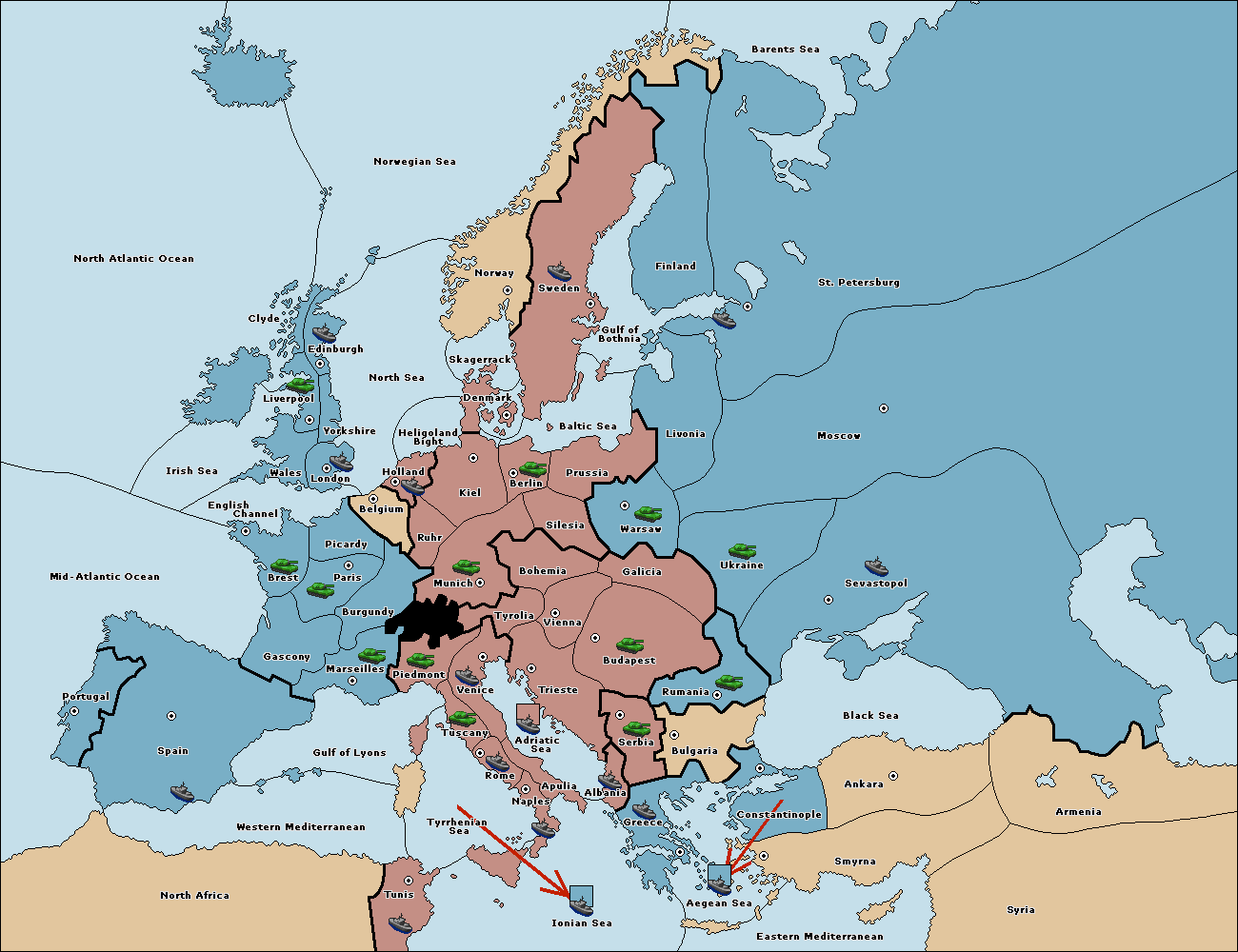 The fleet at Adriatic Sea support hold to Ionian Sea.