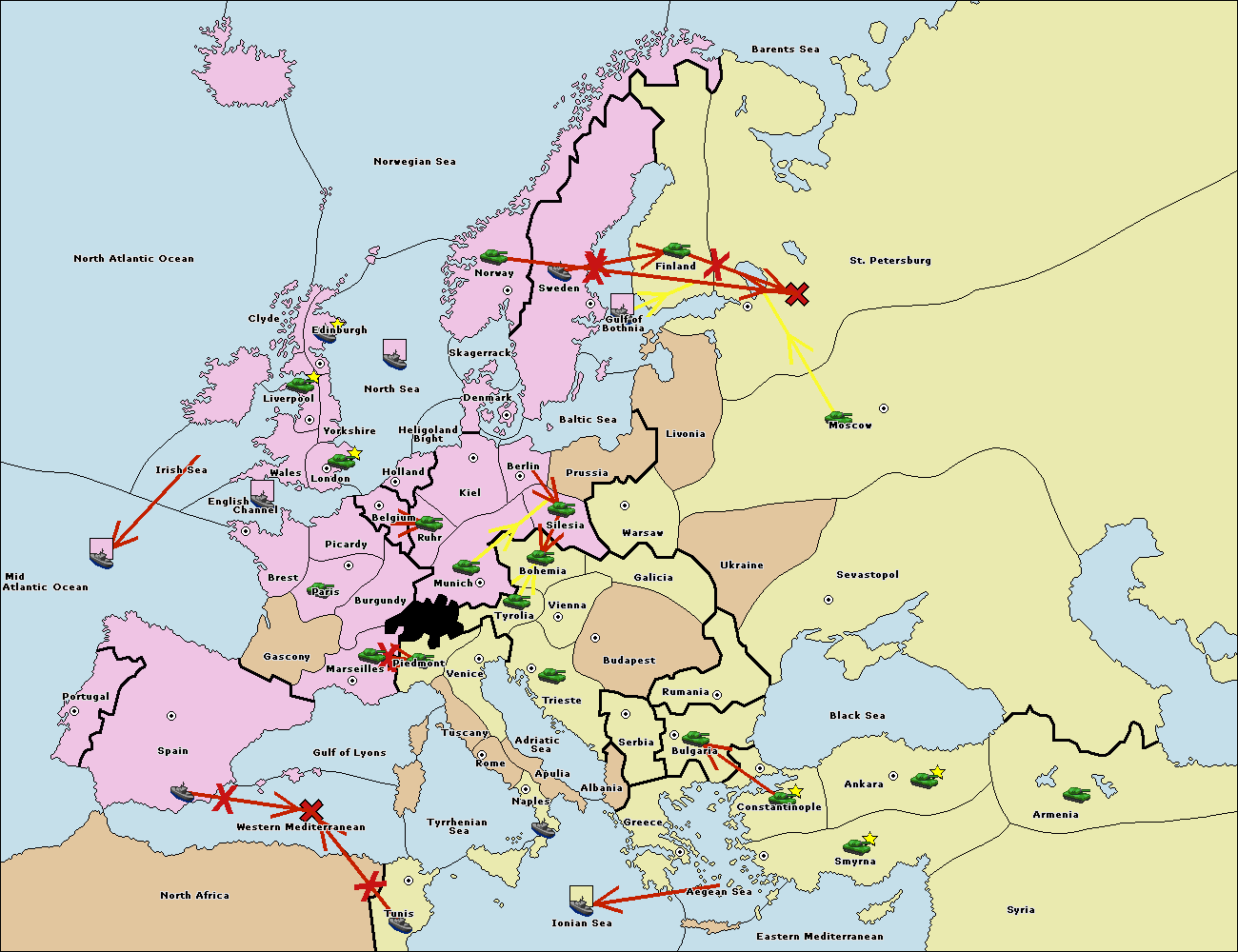 The fleet at Bulgaria (South Coast) move to Greece.