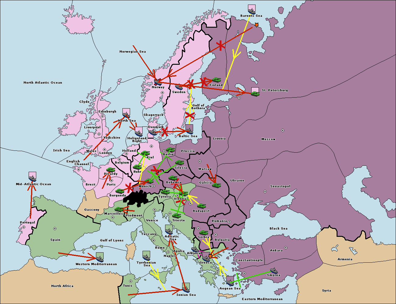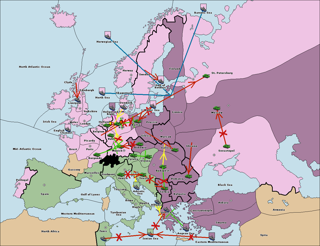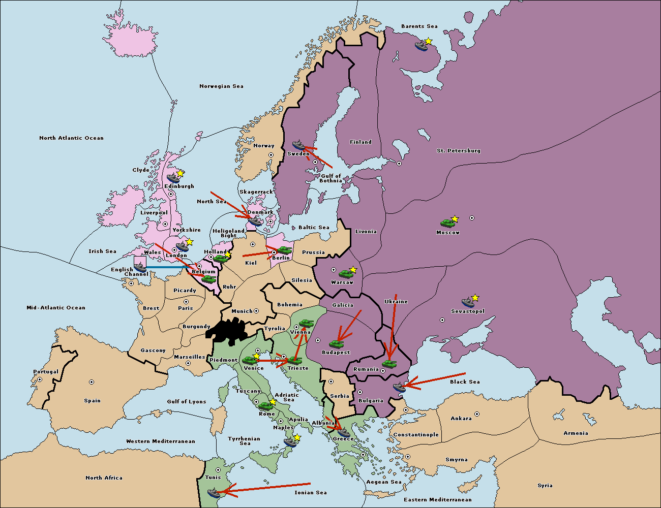 The fleet at Bulgaria (North Coast) move to Constantinople.