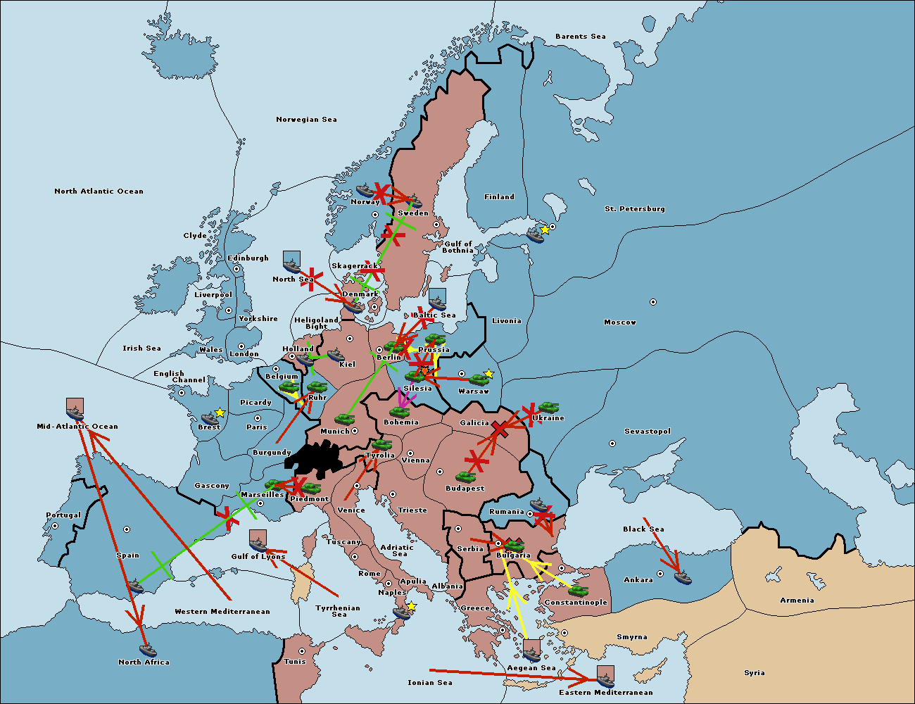 The fleet at Bulgaria (North Coast) support move to Constantinople from Ankara.