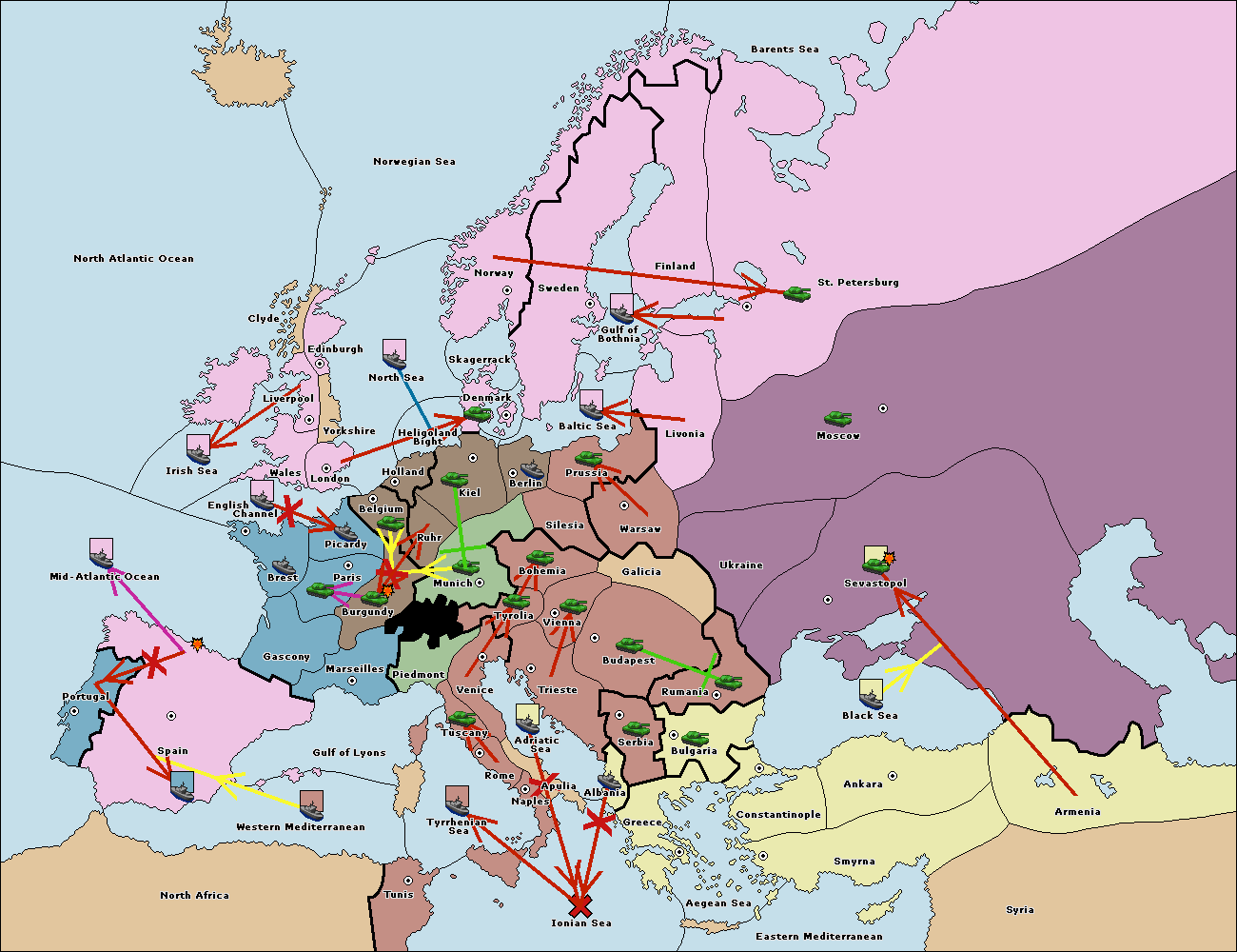 The fleet at Mid-Atlantic Ocean move to Western Mediterranean.