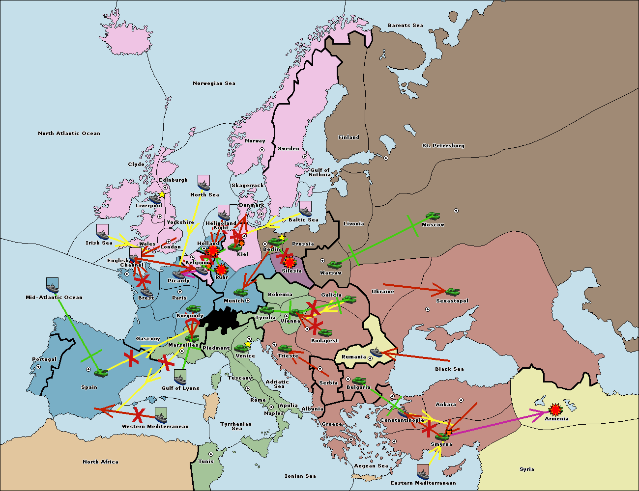 The fleet at Aegean Sea support move to Constantinople from Smyrna.
