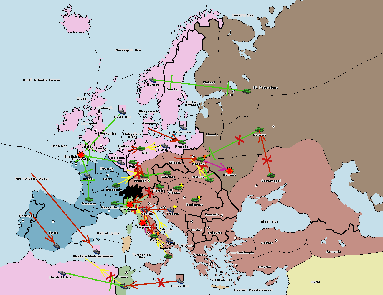 The fleet at Tyrrhenian Sea move to Gulf of Lyons.